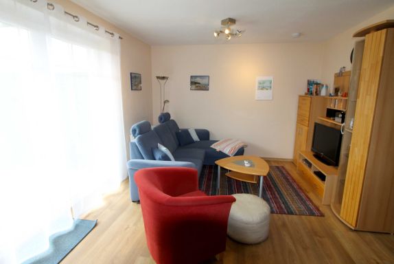 Sie verfügt über einen Wohnraum mit Sat- TV, DVD- Player, WLAN und Hifi- Anlage.