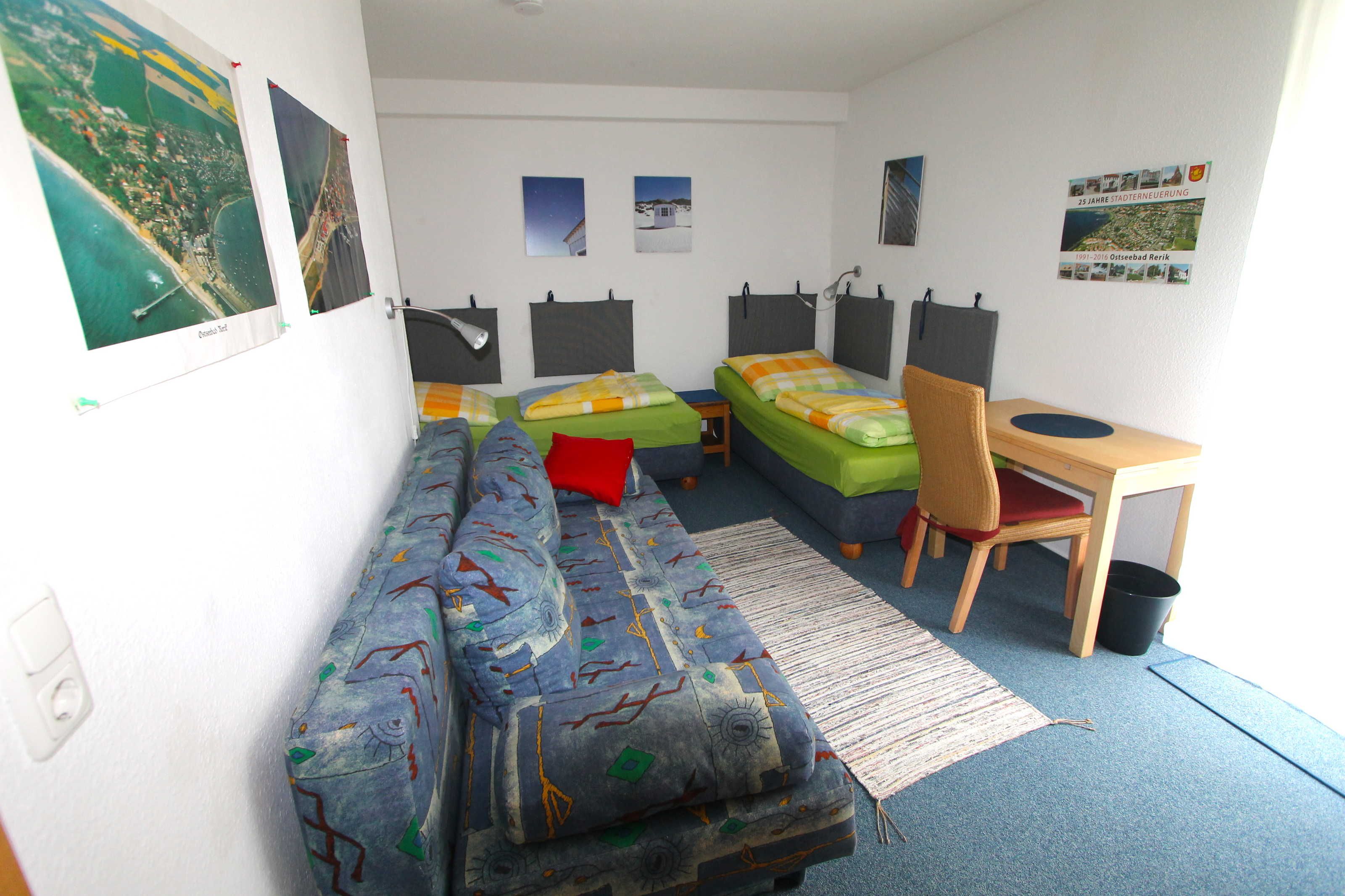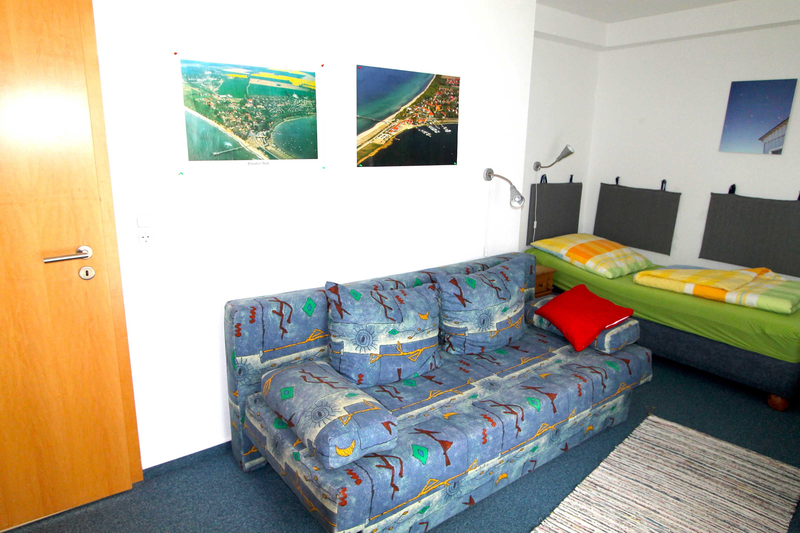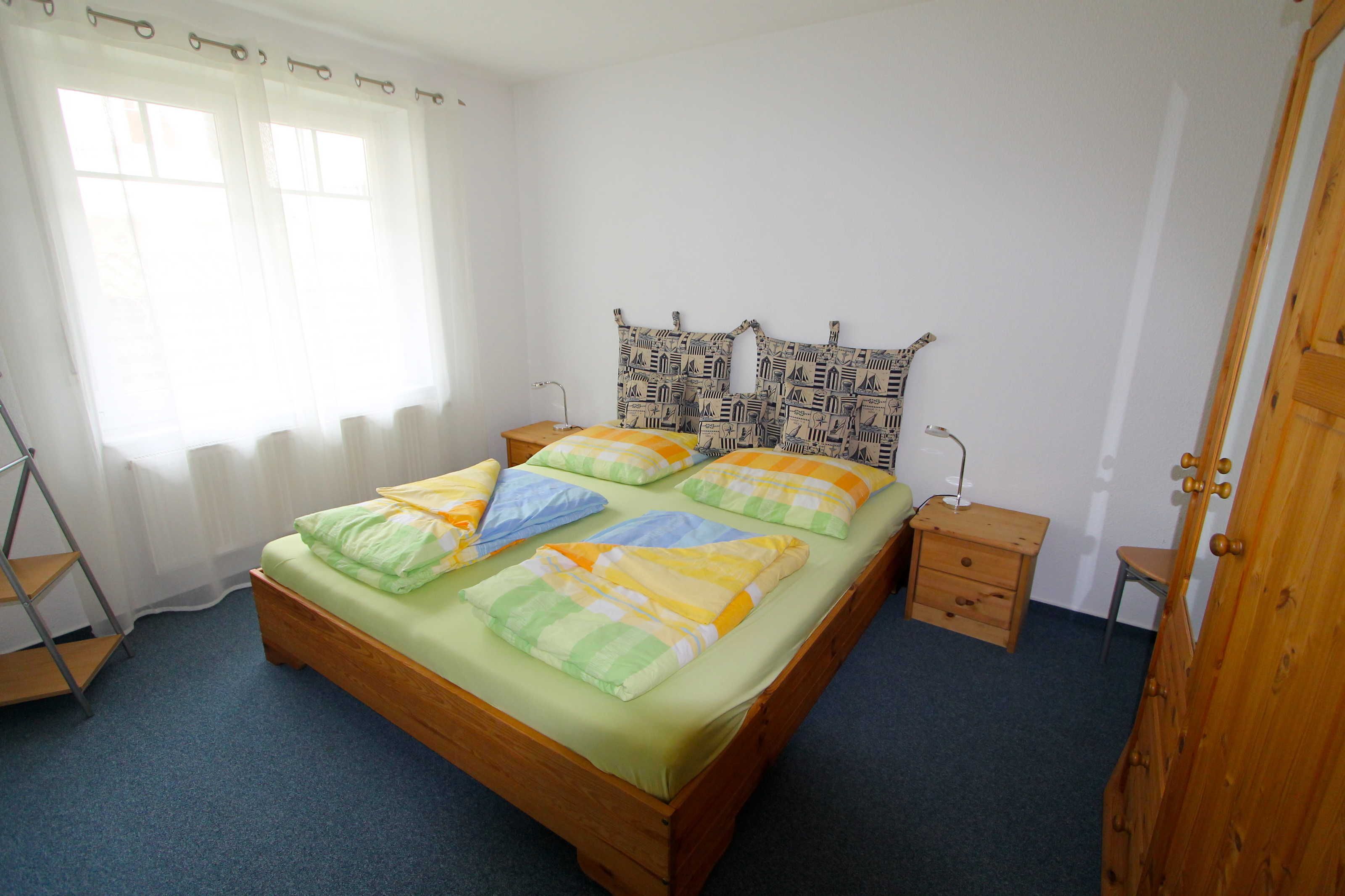 In einem Schlafzimmer befindet sich ein Doppelbett, im zweiten Schlafzimmer zwei Einzelbetten und eine Schlafcouch.