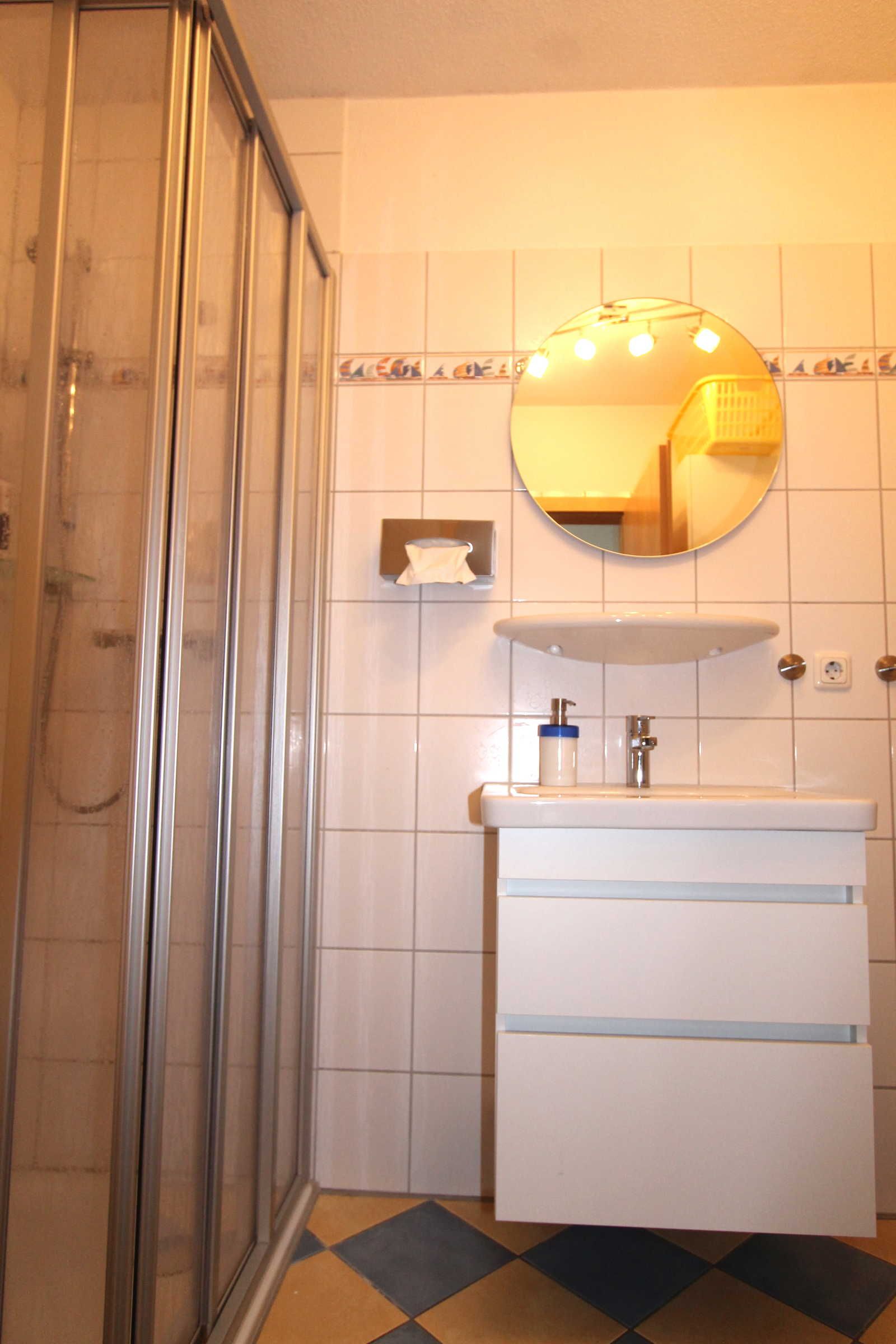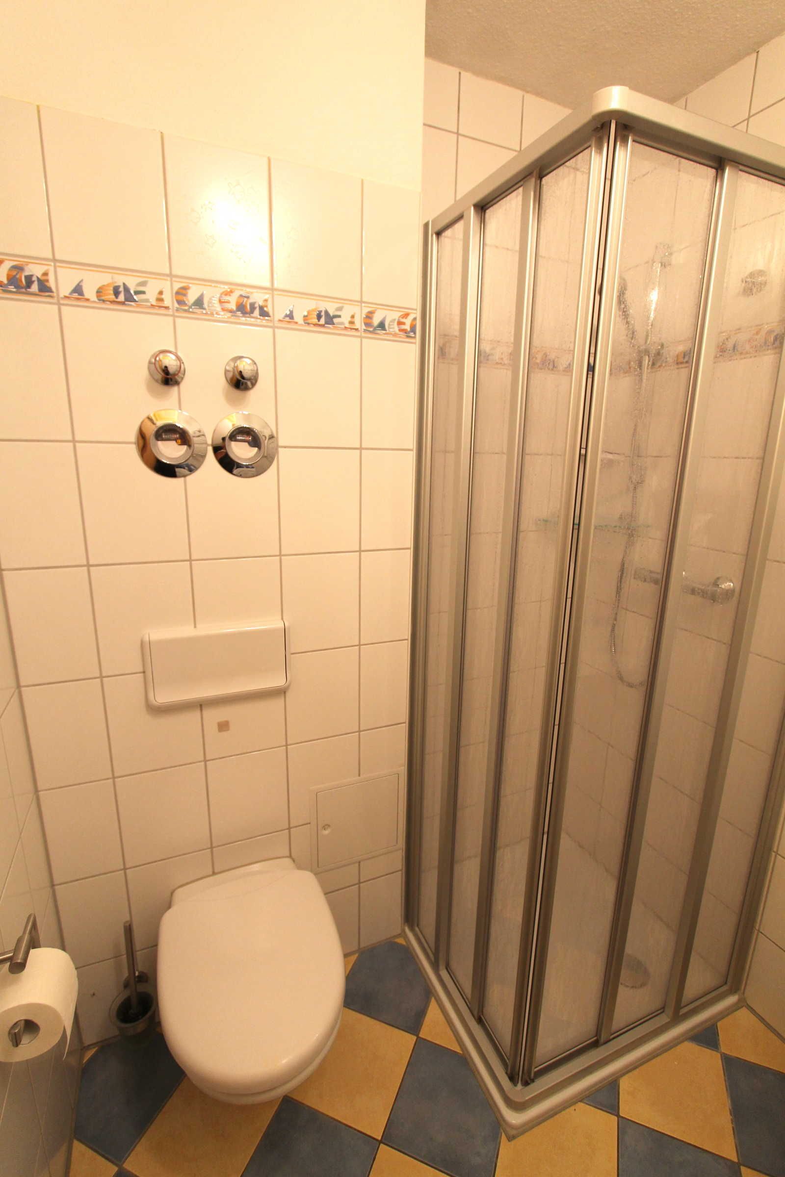 Im Badezimmer befindet sich eine Dusche, WC sowie eine Waschmaschine.