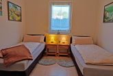 Das im Jahr 2013 neu erbaute altersgerechte Ferienhaus hat eine Größe von 53 m² und ist ausgestattet mit Fußbodenheizung, kontrollierter Be- und Entlüftungsanlage, es ist umweltbewusst durch Photovoltaik und Geothermie. An den Fenstern sind Außenjalousien. Die Einbauküche enthält neben dem Herd mit Backofen einen Geschirrspüler und eine Mikrowelle, eine Kaffeemaschine sowie einen Wasserkocher. Eine Tiefkühlmöglichkeit ist im Haus des Vermieters vorhanden. Im Ferienhaus befindet sich außer dem kombinierten Küchen-/Wohnbereich ein Schlafzimmer mit zwei Betten, die als Doppelbett oder auf Wunsch als zwei Einzelbetten genutzt werden können. Die Betten haben eine komfortable Höhe. Das zweite Schlafzimmer verfügt über ein Bett, welches bei Bedarf ausgezogen und als weitere Schlafgelegenheit verwendet werden kann( 0,80 x 1,70m). Falls erforderlich, wird für Babys und Kleinkinder ein Kinderreisebett zur Verfügung gestellt. Ein Kinderhochstuhl ist ebenfalls vorhanden. Der Wohnbereich umfasst eine Couch mit Tisch, einen Fernseher und DVD-Player, weiterhin befindet sich hier der Esstisch mit vier Stühlen. Das Bad ist ausgestattet mit Dusche, Waschmaschine, Fön und verfügt über ein Fenster. Bettwäsche und Handtücher sind inklusive. Auf Wunsch kann die Mehrwertsteuer ausgewiesen werden.