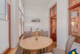 Der Essplatz befindet sich in der angrenzenden, hellen Loggia. An dem großen Tisch speisen Sie mit Blick in den Ort oder nutzen den Platz für gemeinsame Spieleabende.