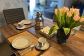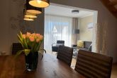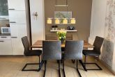 • vom Wohnraum aus betreten Sie die offen gestaltete Küche mit Esstisch. Die Einbauküche ist komplett ausgestattet mit Kochzubehör, Geschirr, Herd, Kühlschrank, Geschirrspüler, Mikrowelle, Wasserkocher und Kaffeemaschine