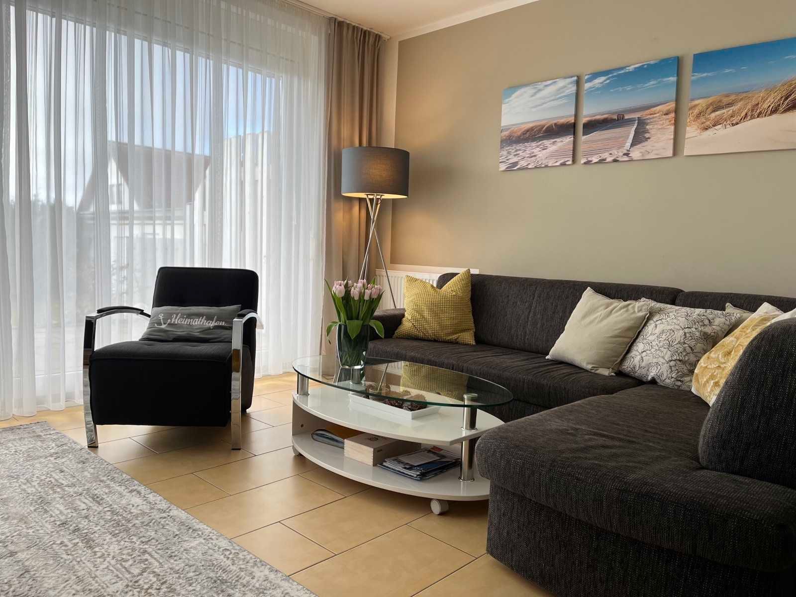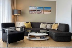 • der große Wohnraum ist ausgestattet mit großem Flachbild-TV, Radio, CD-u. DVD-Player, Eckcouch, Sideboards und Couchtisch