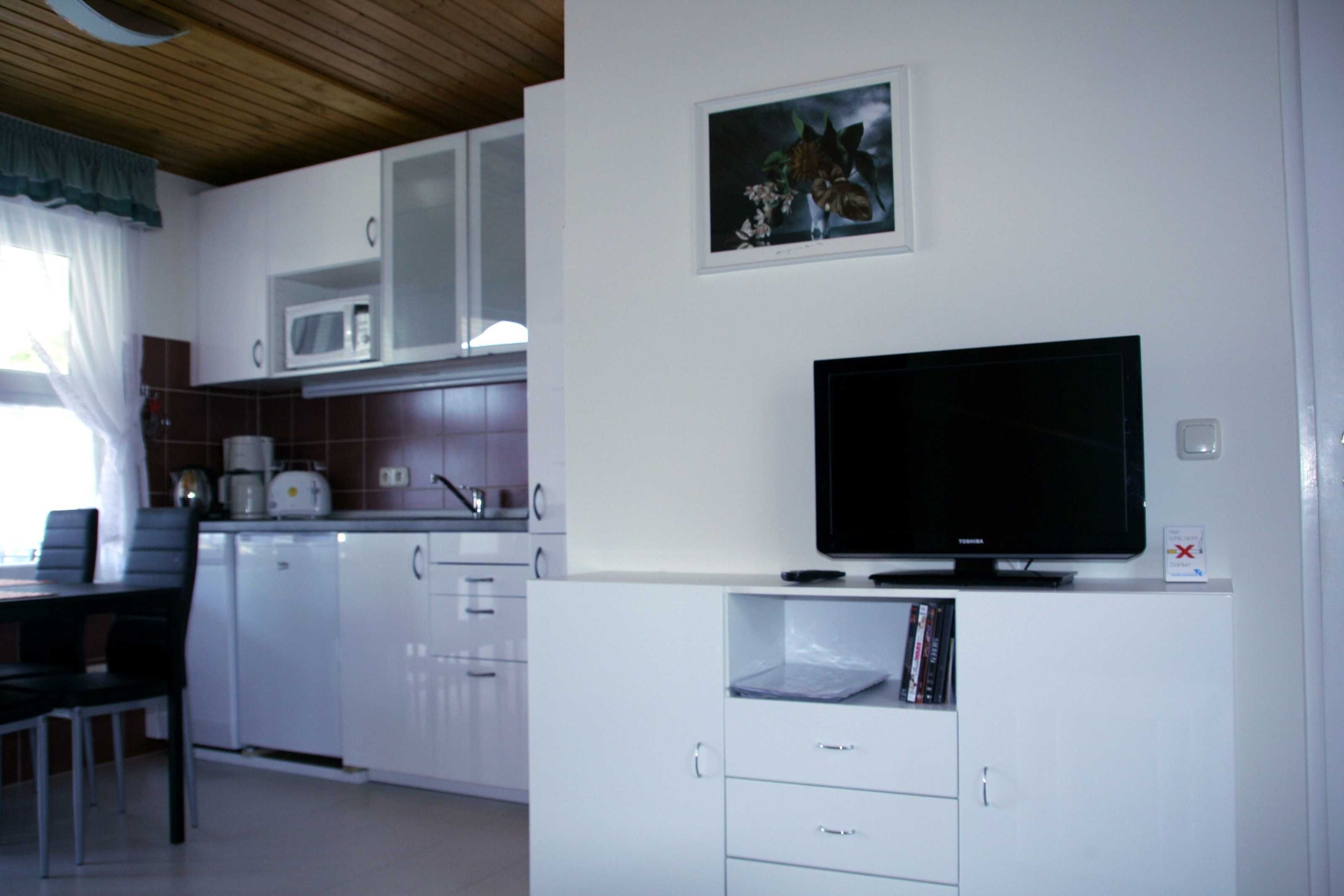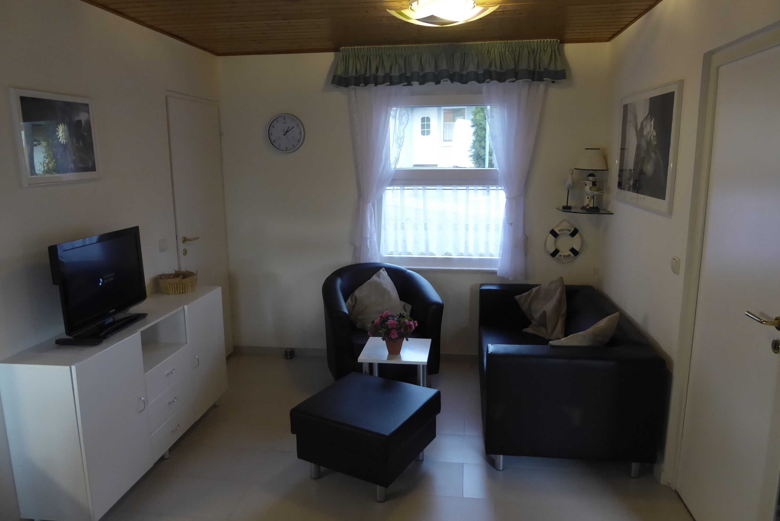 Wohnzimmer mit Kabel-TV und Küchenradio,