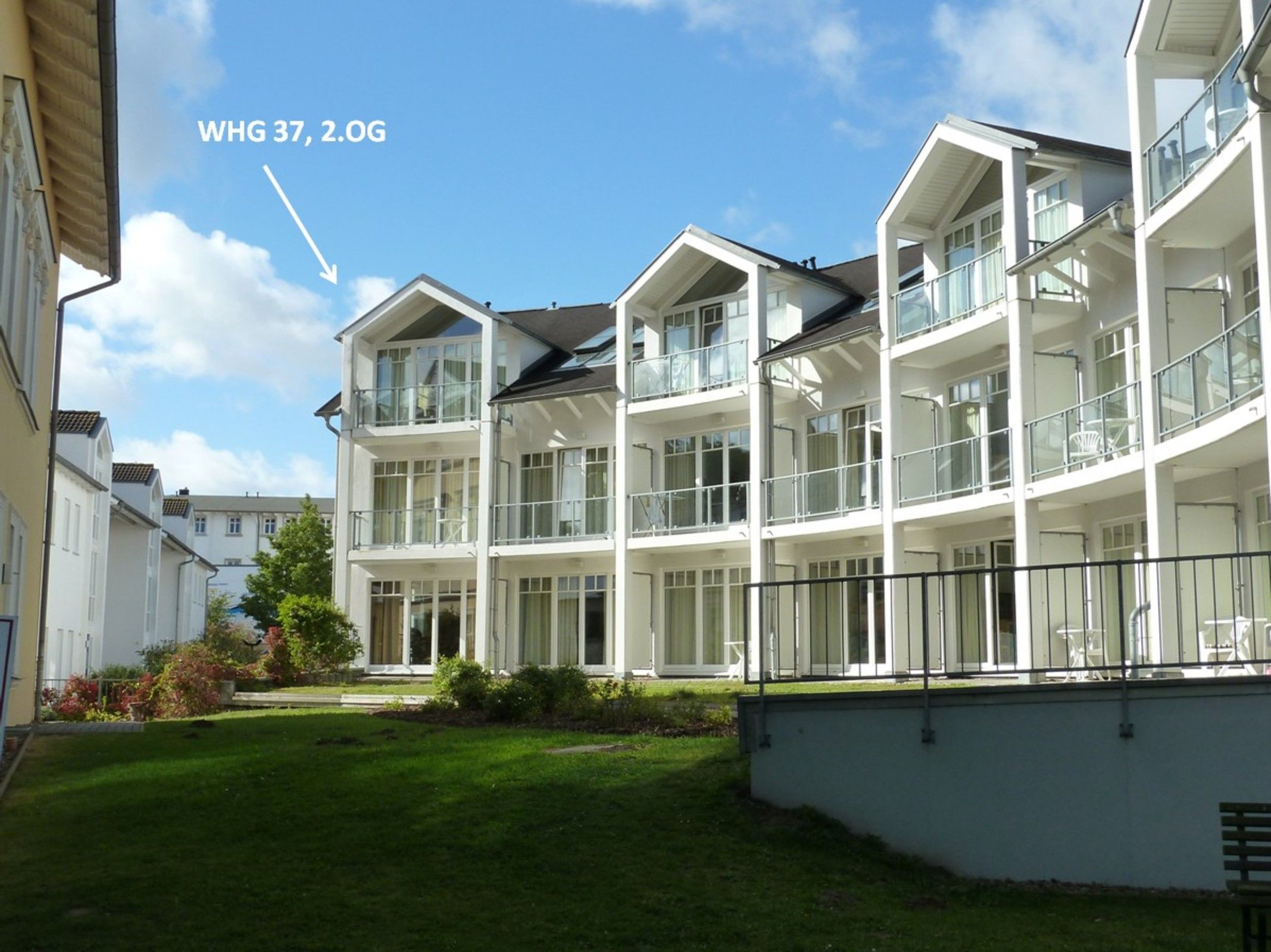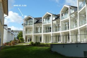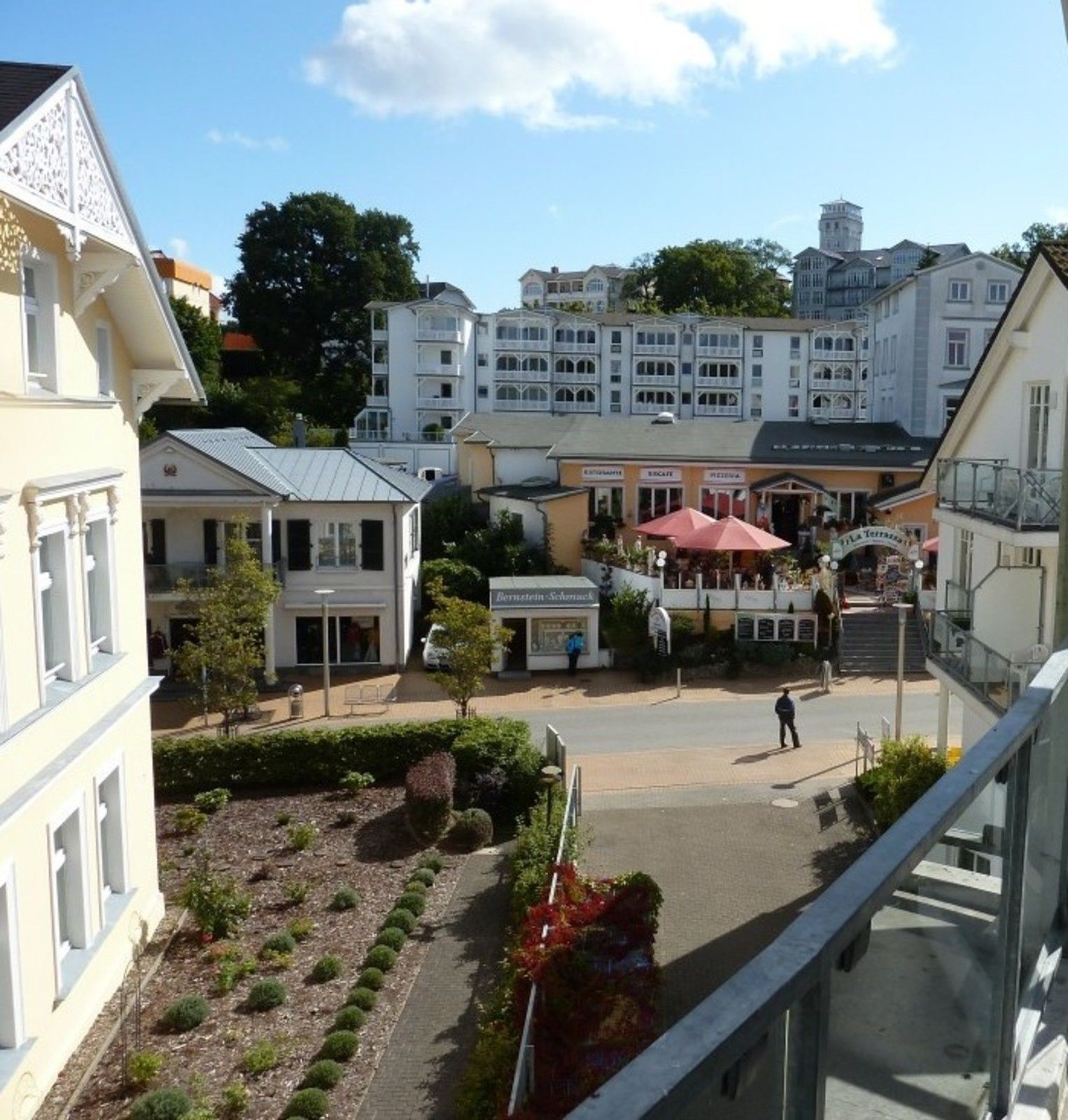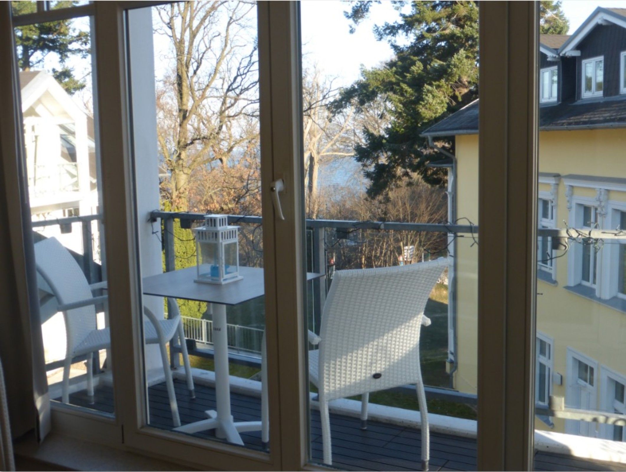 Dies ermöglicht einen traumhaften Blick in den Garten der Villa Granitz und zur Ostsee. In der Vor- und Nachsaison können Sie vom Balkon mit Gartenmöbel durch die Baumkronen auf die Ostsee schauen, im Sommer auf die dann begrünte Waldpromenade.