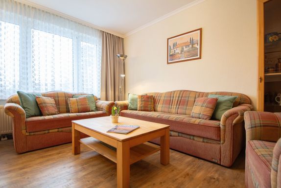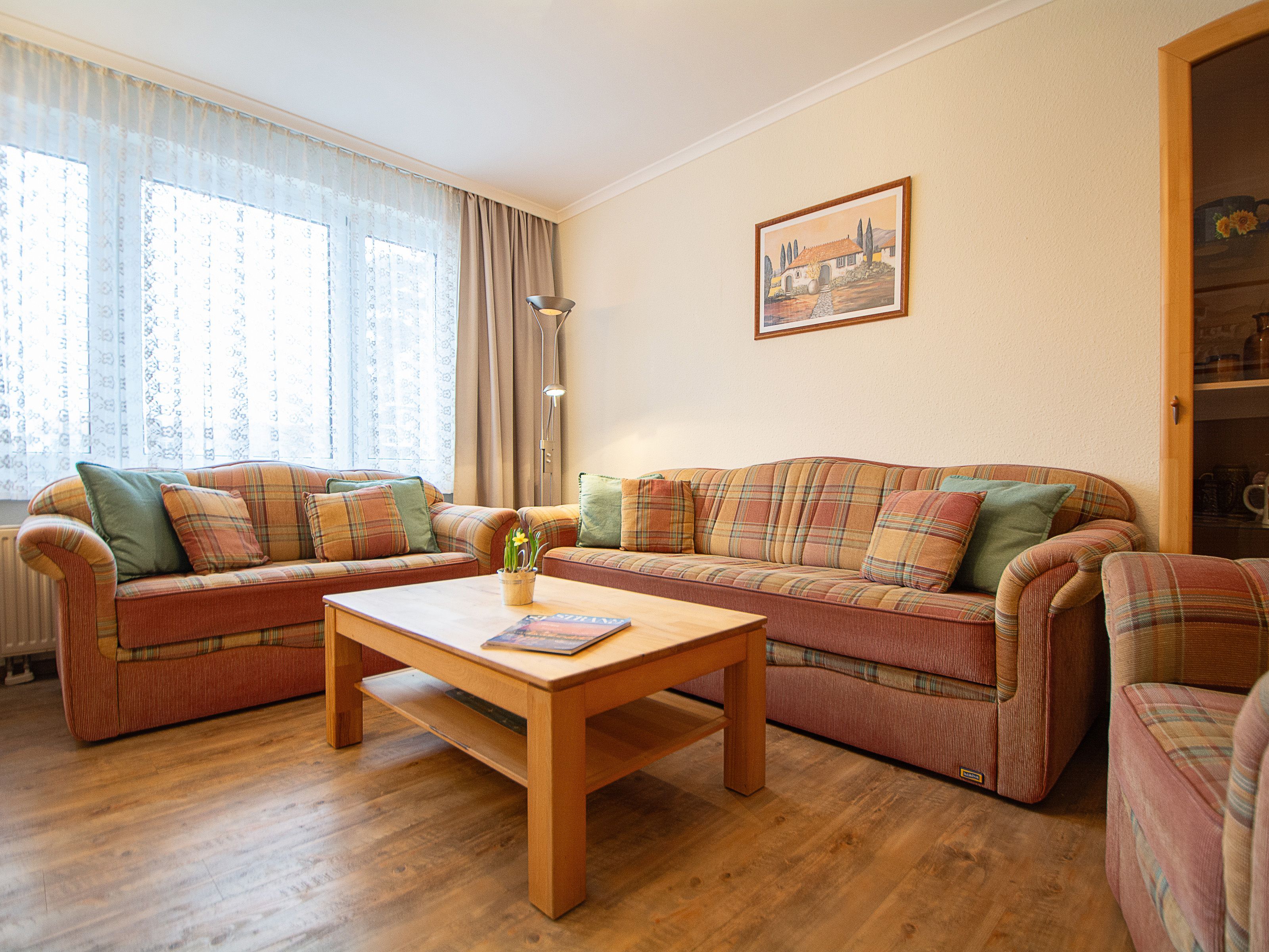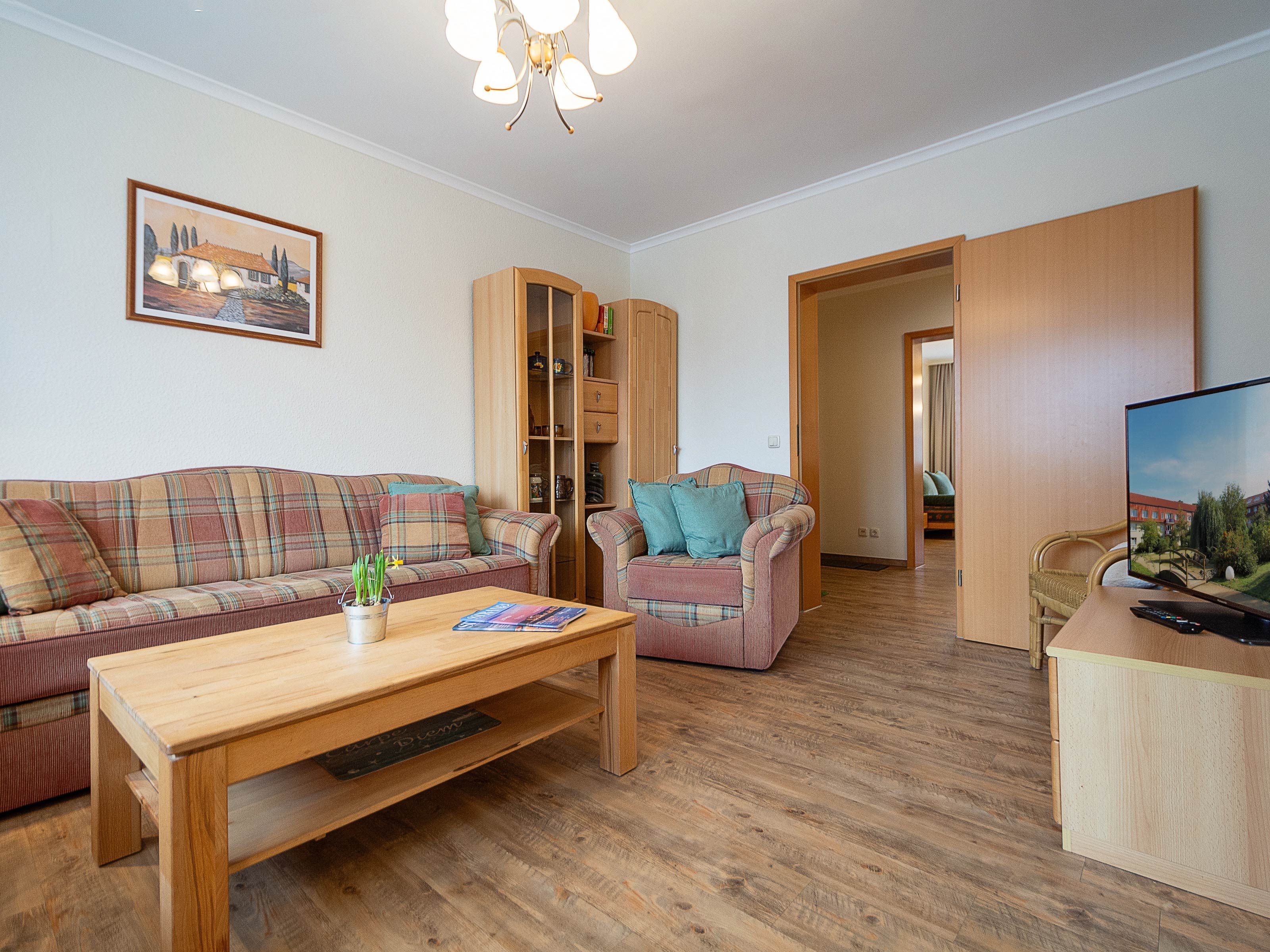 Herzlich willkommen in der Wohnung Nr. 40 in der Residenz Dünengarten. Sie wohnen in einer ca. 78m² großen 3-Raum-Ferienwohnung, die sich im 1. Obergeschoss des Hauses befindet. Es empfangen Sie ein heller offener Wohn-und Essbereich, eine separate Küche, zwei Schlafzimmer, ein Duschbad und ein Gäste-WC sowie ein Balkon.