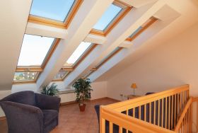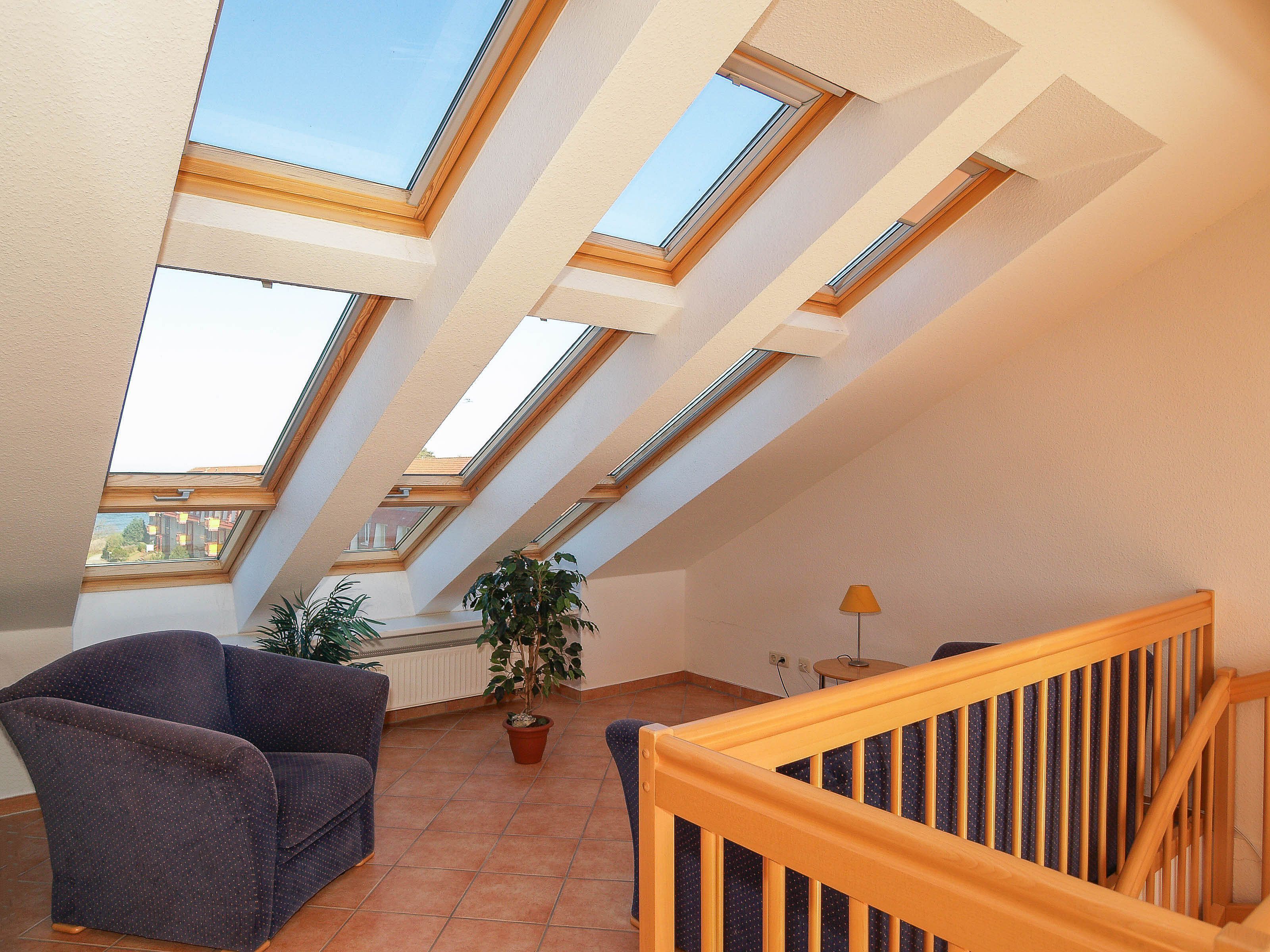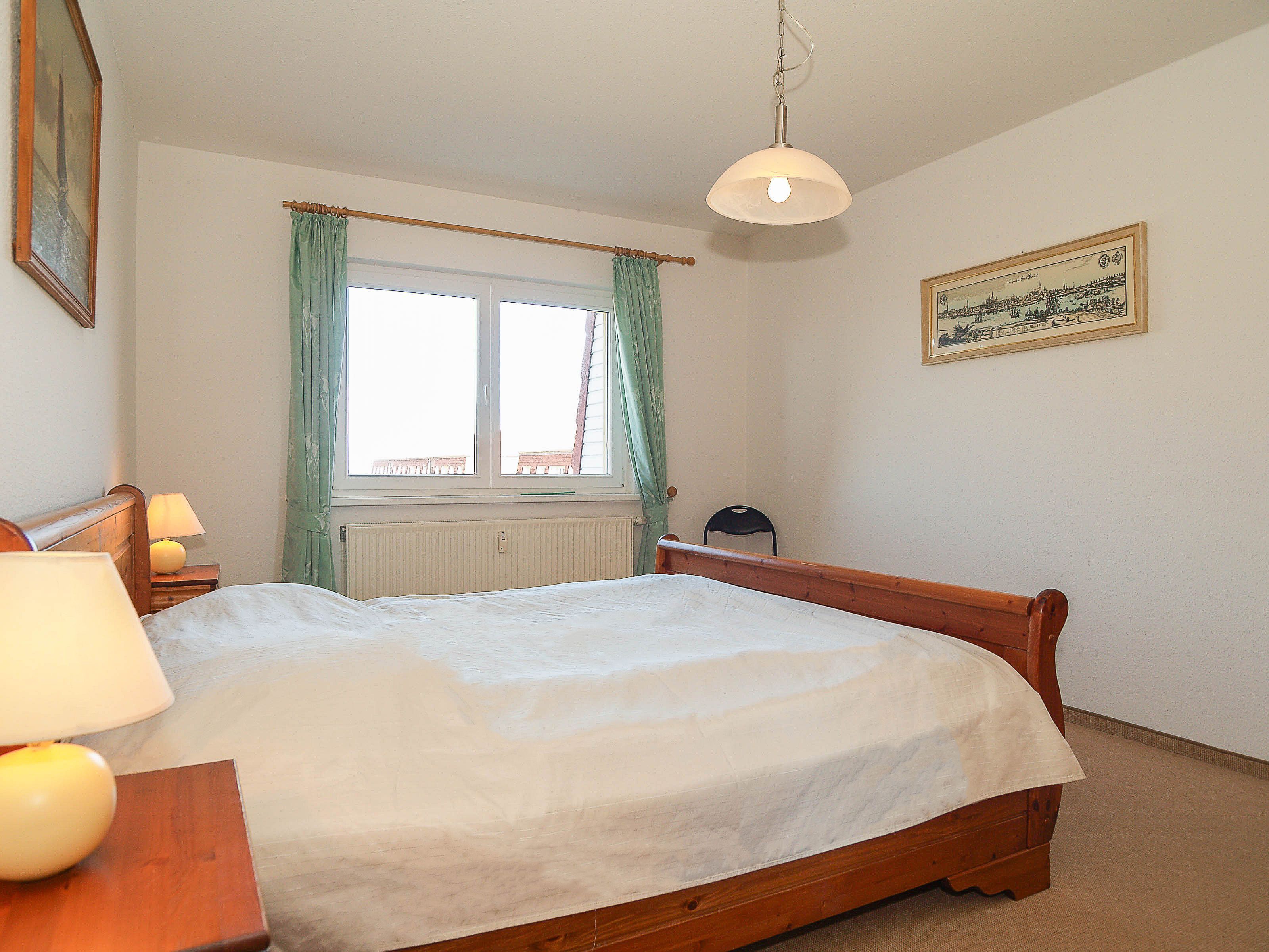 Im Schlafzimmer lädt Sie ein komfortables Doppelbett (2 x 90 x 200 cm) zur Nachtruhe ein. Der großzügige Kleiderschrank mit Ganzkörperspiegel bietet genügend Platz für Ihre Urlaubsgarderobe. In der oberen Etage finden Sie einen Wohn- Schlafraum mit Schlafcouch (ausgezogen 150cm breit) und TV. Die große nach Süden ausgerichtete Dachterrasse, die zum Sonnenbaden und langen Abenden zu einem Gläschen Wein einlädt, betreten Sie vom oberen Wohnraum aus.