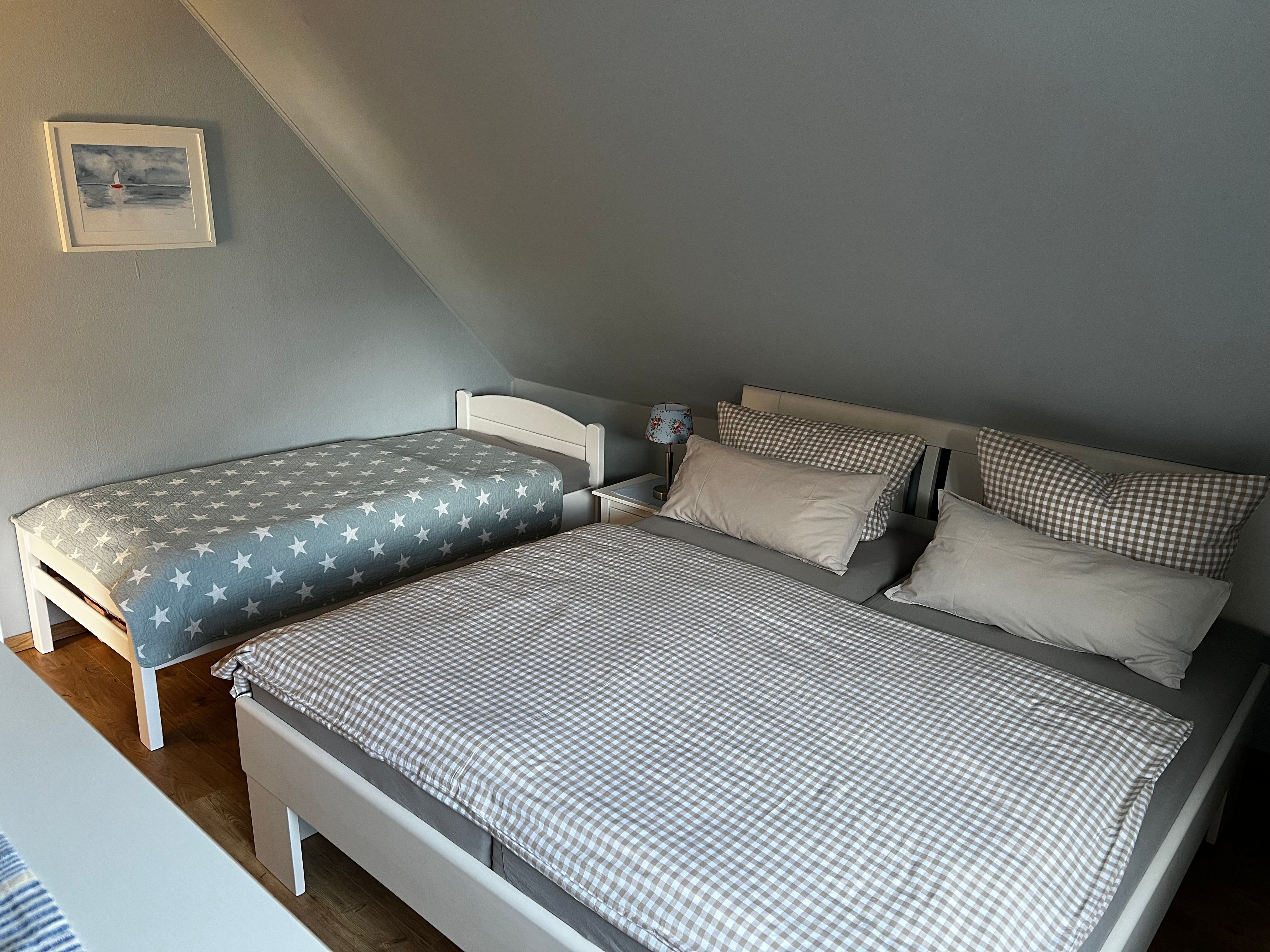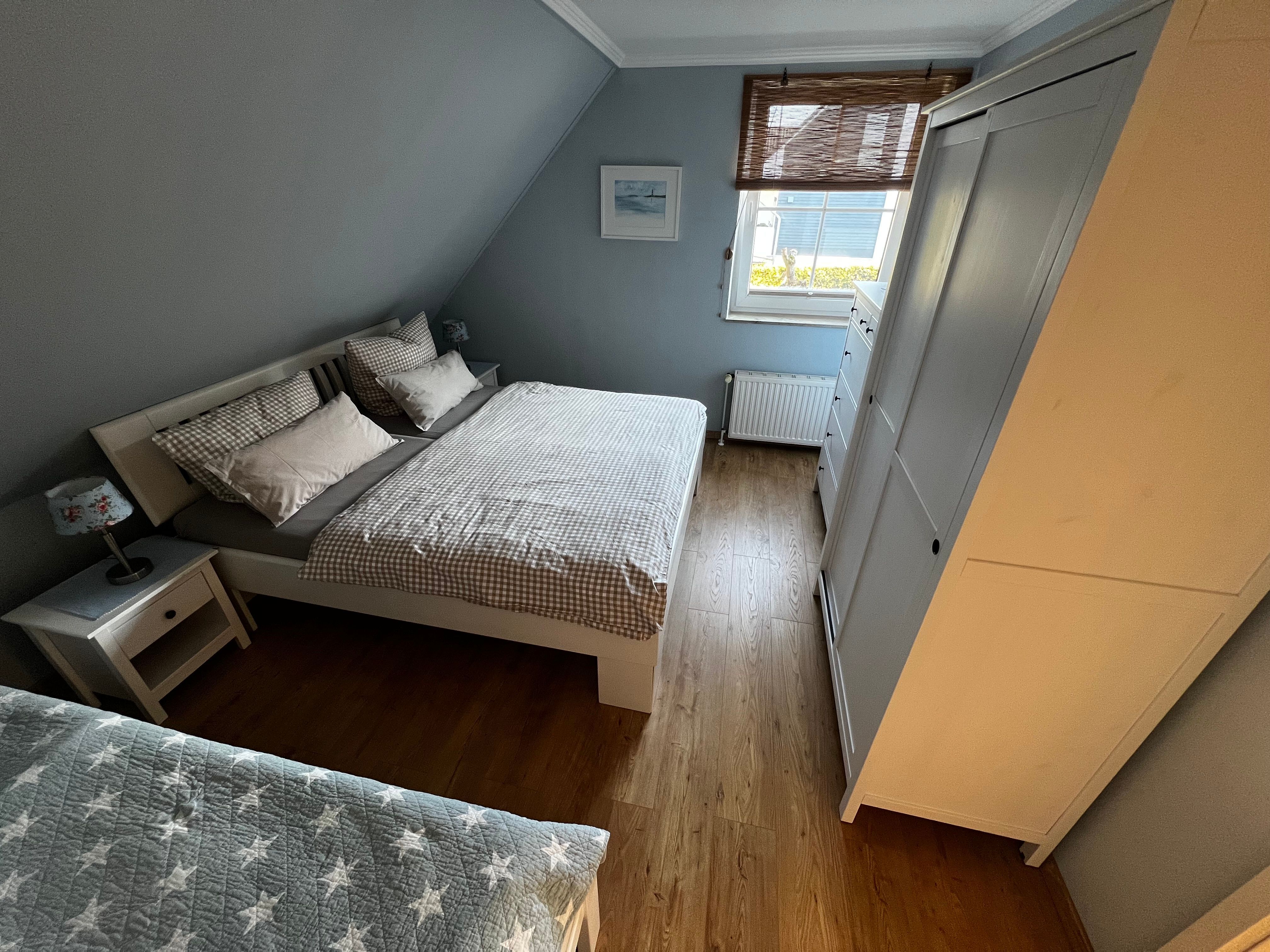 frisch renovierten Schlafzimmer befinden sich ein Doppelbett (1,80 m x 2,00 m), ein