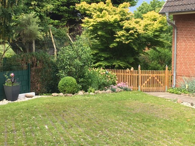 in einer gepflegten Sackgasse ohne Durchgangsverkehr. Der grüne Garten lädt zum