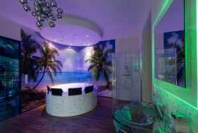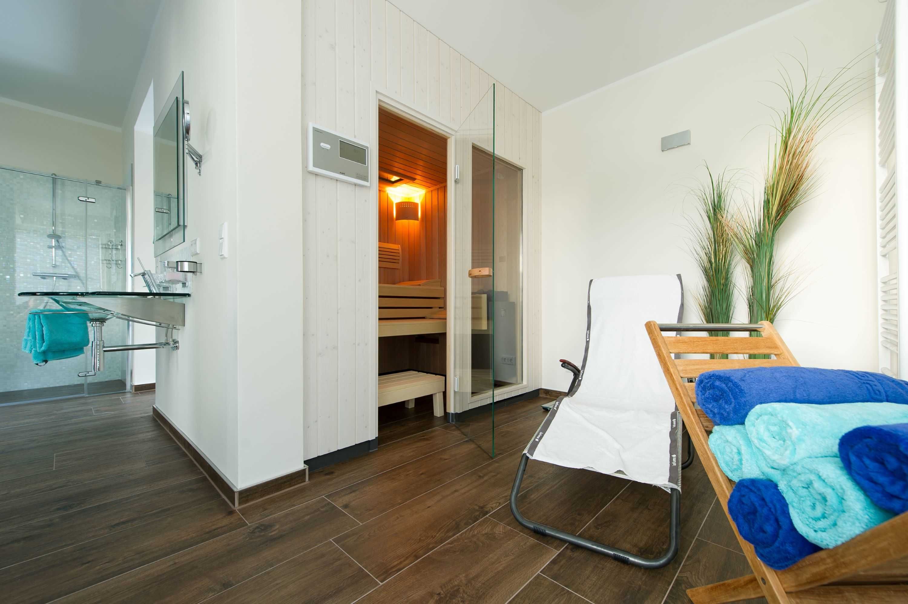 • Wellnessbereich mit Sauna Firma Klafs + Whirlpool, Musikanlage im Wellnessbereich (mit Licht- und Klangerlebnis)