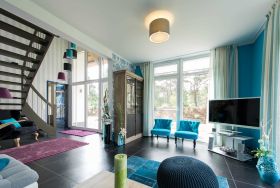 VAKON Ostseeland in Karlshagen ist eine in Mecklenburg-Vorpommern einzigartige 5-Sterne-Ferienhaus-Anlage mit 42 großzügigen, schilfrohrgedeckten Strandhäusern mit bis zu 225 m² Wohnfläche und 26 Ferienwohnungen. Grundstücke mit bis zu 3300 m² Fläche bieten viel Platz zum Entspannen. Dieses exklusive, 2013 erbaute Strandhaus mit 160 m² Wohnfläche ist ca. 4 Gehminuten vom Strand entfernt.