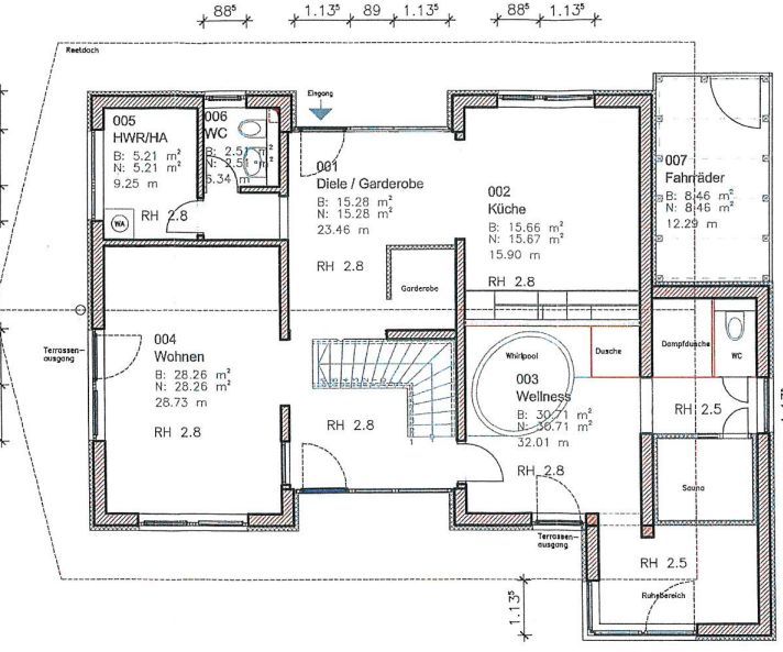 • Deckenhöhe im Erdgeschoss ca. 2,86 m