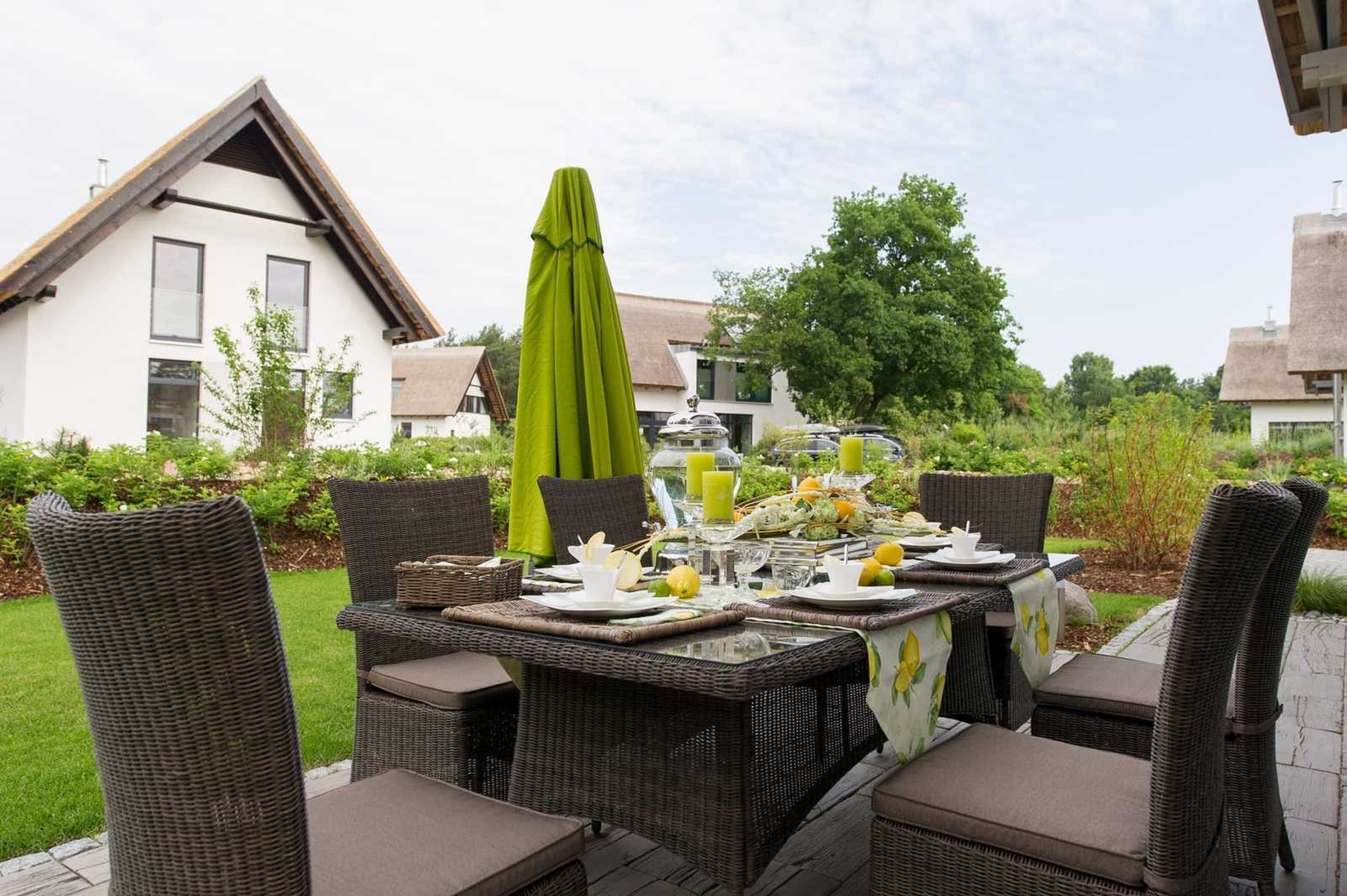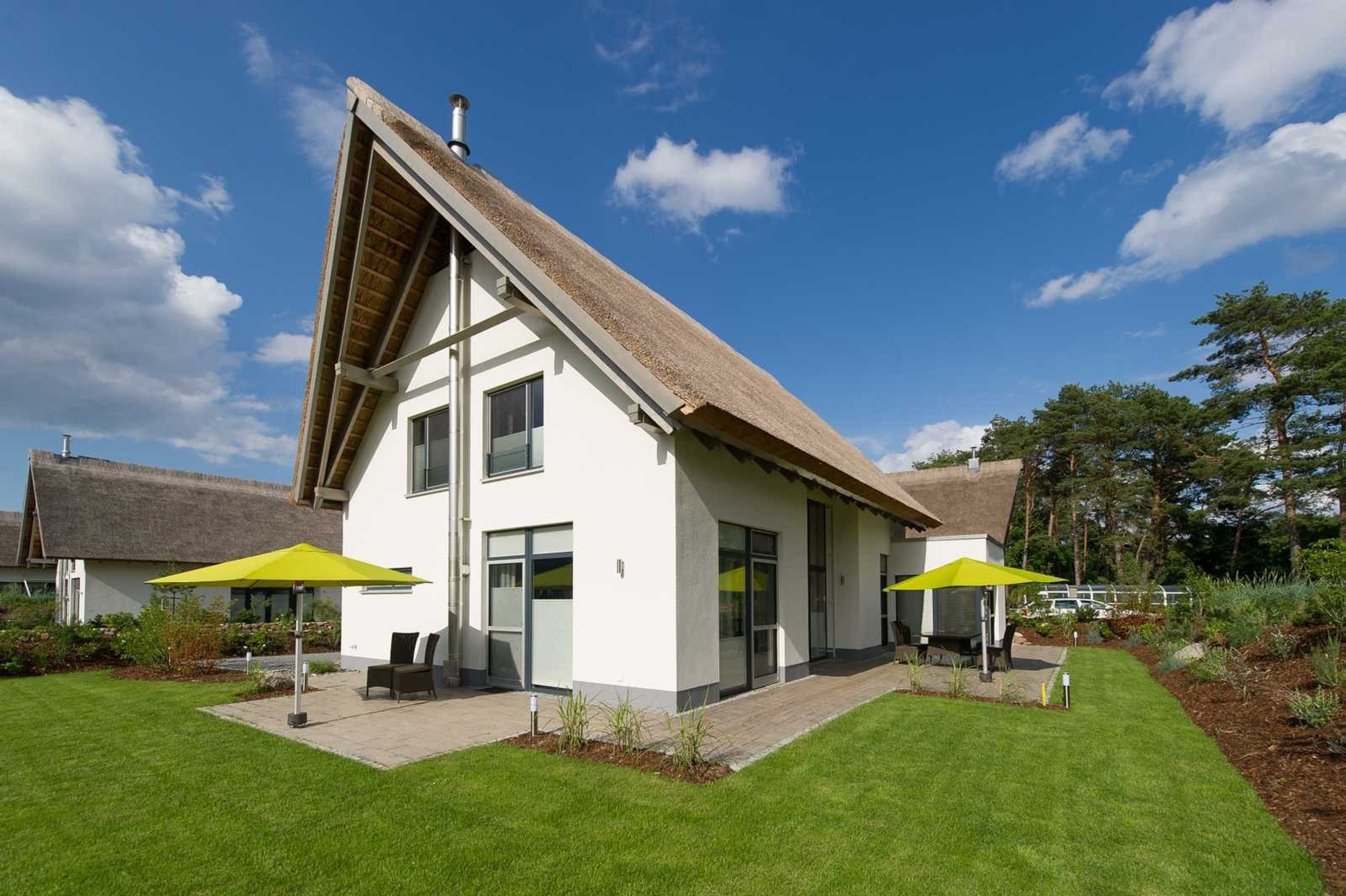 Exklusives, 2013 erbautes, schilfrohrgedecktes Strandhaus in der 5-Sterne-Haus-Anlage VAKON Ostseeland in Karlshagen in der Nähe eines Naturschutzgebietes, ca. 4 Gehminuten vom Strand entfernt gelegen