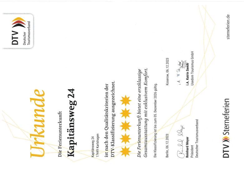 5-Sterne-Klassifizierung durch den Deutschen Tourismusverband