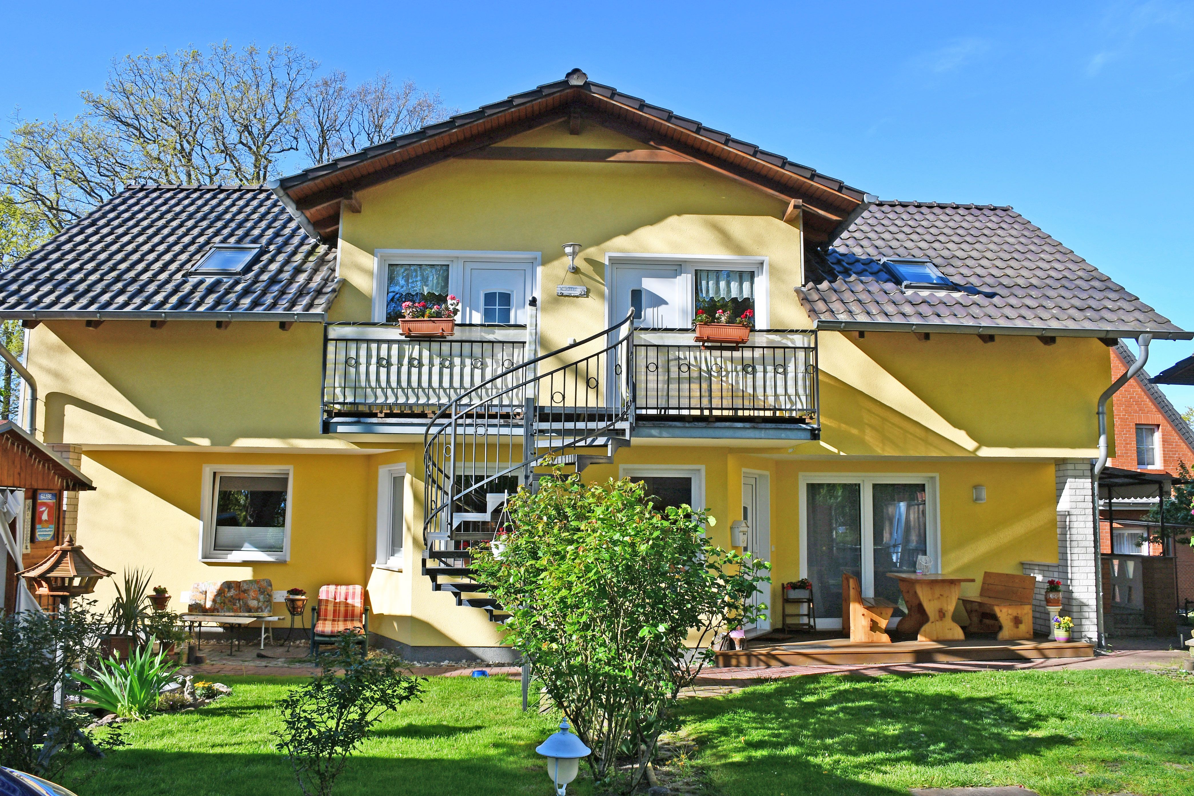 Die modern und komfortabel eingerichteten Ferienwohnungen verfügen über einen kleinen Balkon bzw. eine Terrasse mit Gartenmöbeln und haben separate Eingänge.