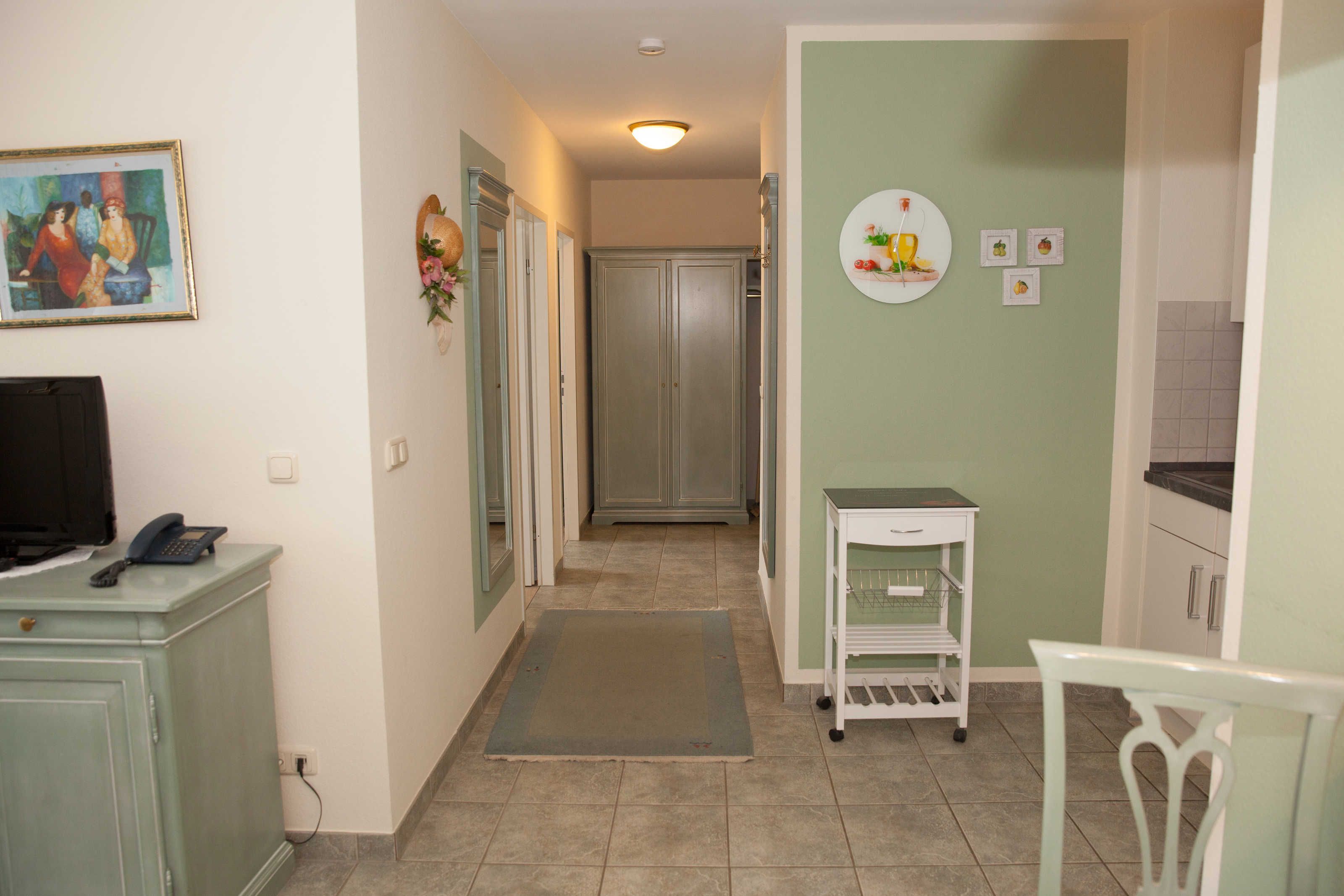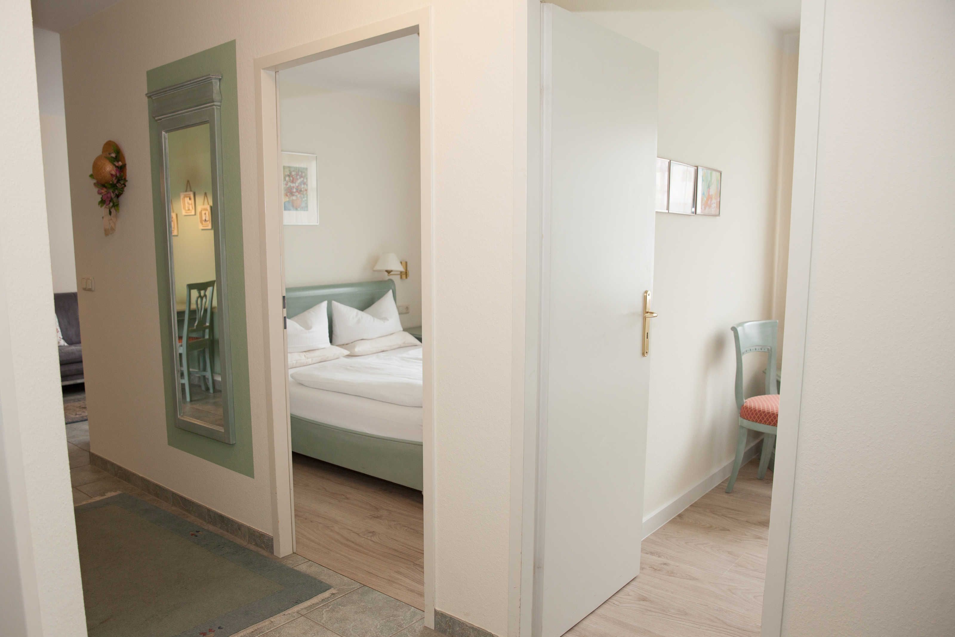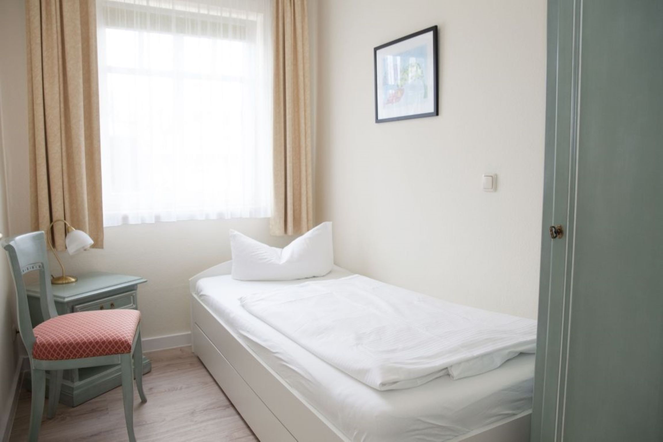 Nur 150 m vom Strand wohnen Sie in einer 3-Raum-Ferienwohnung. Die 42 qm große Wohnung liegt im Erdgeschoss. Das Wohnzimmer ist mit einer Couch, Couchtisch, Sessel, Anrichte, mit Kabel-TV (Flachbildschirm), Radio, Essbereich (Tisch und Stühle) und Küchenzeile ausgestattet. Die Terrasse mit Tisch und Stühle geht zur Westseite. Im Schlafzimmer stehen ein Doppelbett und eine kleine Anrichte und ein TV zur Verfügung. Im Gästezimmer stehen ein Bett mit ausziehfunktion, Nachtschrank und ein kleiner Kleiderschrank. Im Flur steht ein Kleiderschrank und eine Garderobe mit Spiegel. Die Küchenzeile wurde ausgestattet mit Mikrowelle, Kühlschrank, Kaffeemaschine, Zwei-Platten-Kochfeld, Toaster und Wasserkocher. Das Bad mit Dusche und WC komplettiert die Wohnung.