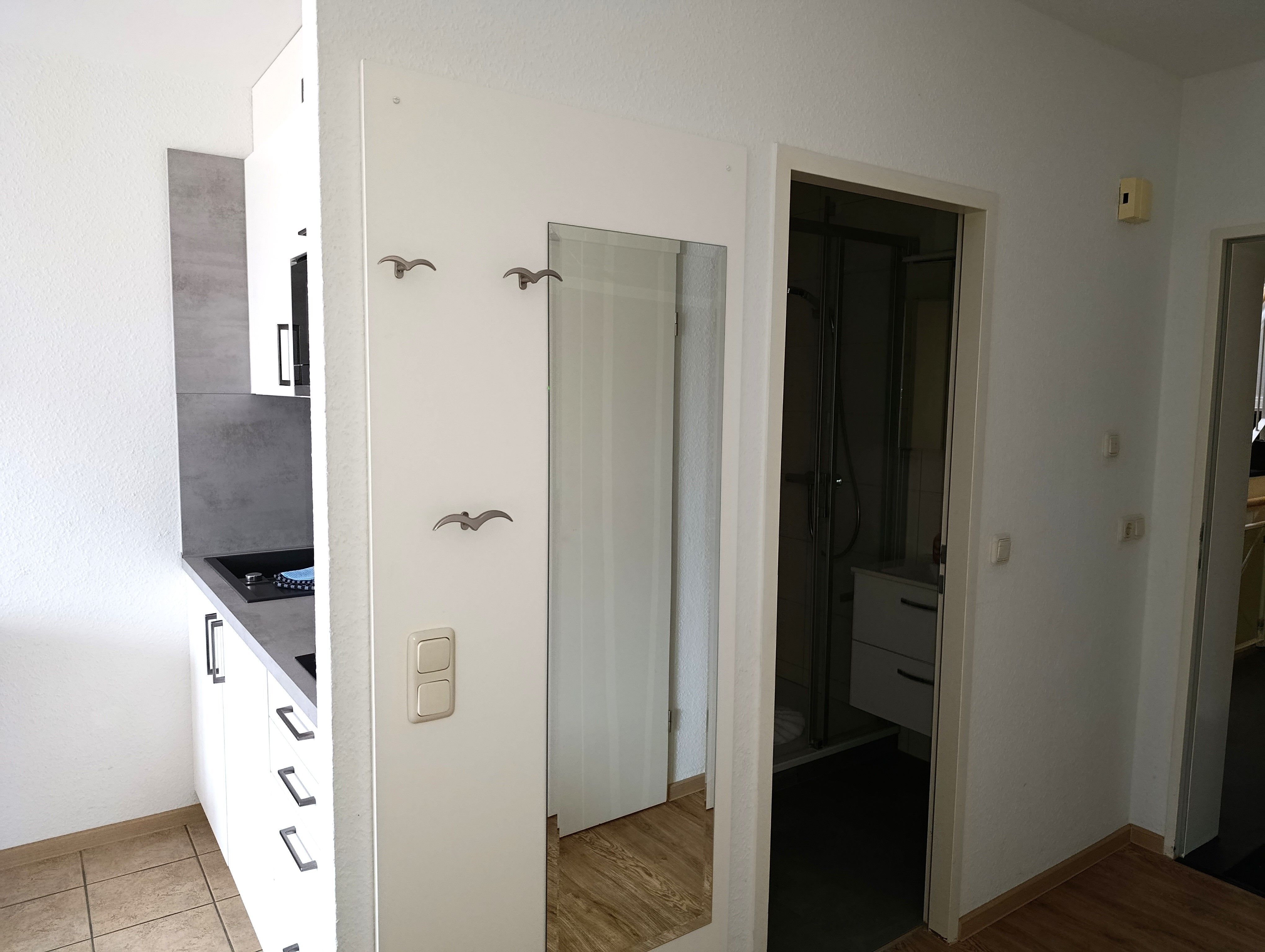 Die ca. 31 qm große Ferienwohnung liegt in der II. Etage hat neben dem Wohnzimmer noch ein Schlaf- und ein Gästezimmer, eine Küchenzeile sowie ein Duschbad und einen Balkon.