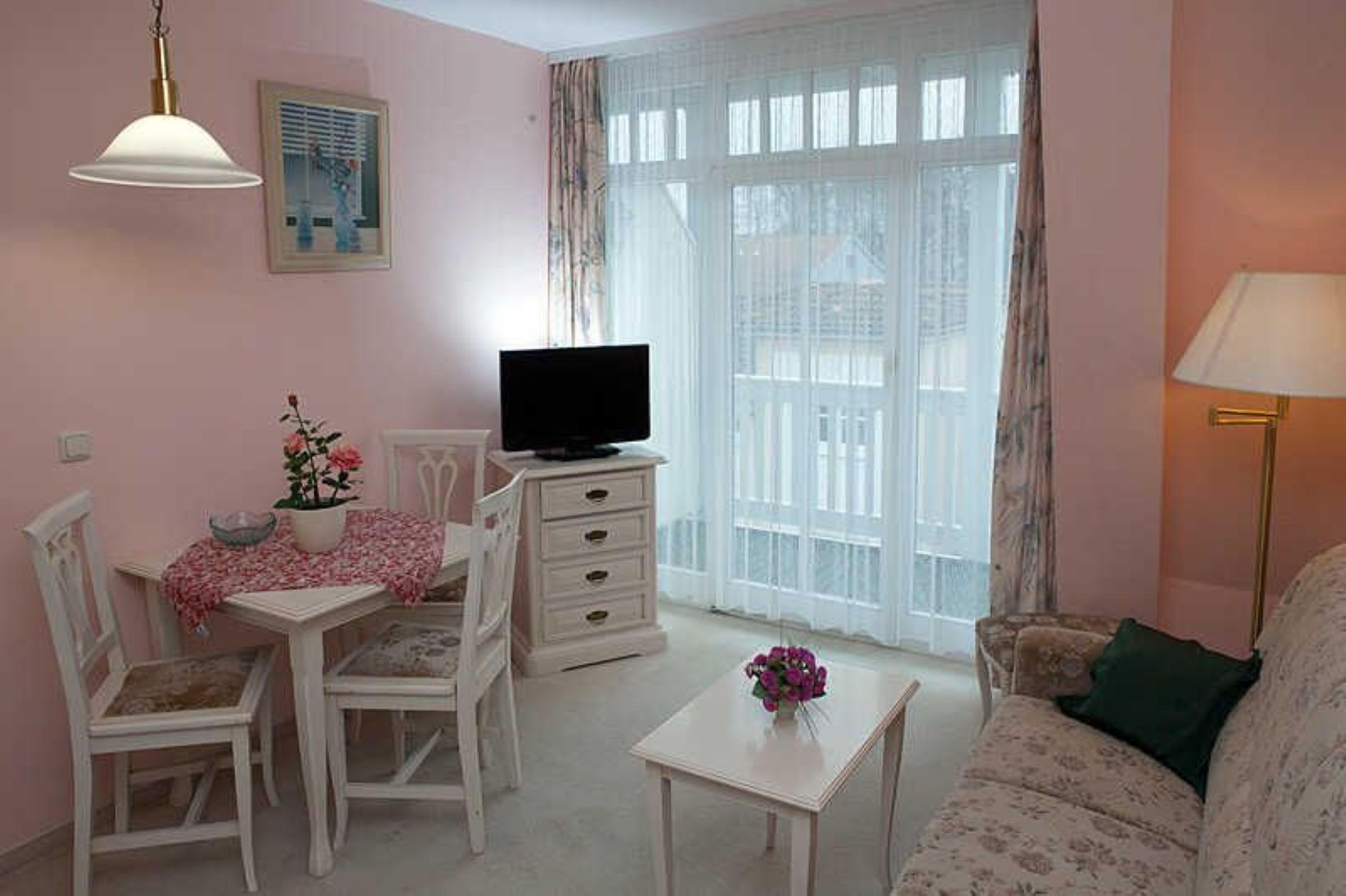 Die Ferienwohnungen sind dem Apart-Hotel „Rosenhof“ angeschlossen. Daher besteht die Möglichkeit, den Service des Hotels mit zu nutzen. Sie können Frühstück und die tägliche Reinigung der Wohnung dazu buchen. Die Ferienwohnung liegt am Rande des Baltic-Parks. Bis zur Ostsee sind es ca. 150 m.
