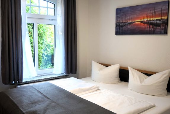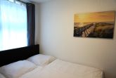 Nur 150 m vom Strand wohnen Sie in einer 3-Raum-Ferienwohnung. Die 55 qm große Wohnung liegt im Erdgeschoss. Das Wohnzimmer ist mit einer Couch, Couchtisch, Sessel, Anrichte, mit Kabel-TV, Radio, Essbereich (Tisch und Stühle) und Küchenzeile ausgestattet. Die Terrasse mit Tisch und Stühle geht zur Ostseite. Im Schlafzimmer stehen ein Doppelbett und ein Kleiderschrank. Im Gästezimmer stehen ein Boxspringbett und ein kleine Anrichte. Die Küchenzeile wurde ausgestattet mit Mikrowelle, Kühlschrank, Kaffeemaschine, Ceran-Kochfeld und Backofen, Geschirrspüler, Toaster und Wasserkocher. Das Bad mit Dusche und WC komplettiert die Wohnung.