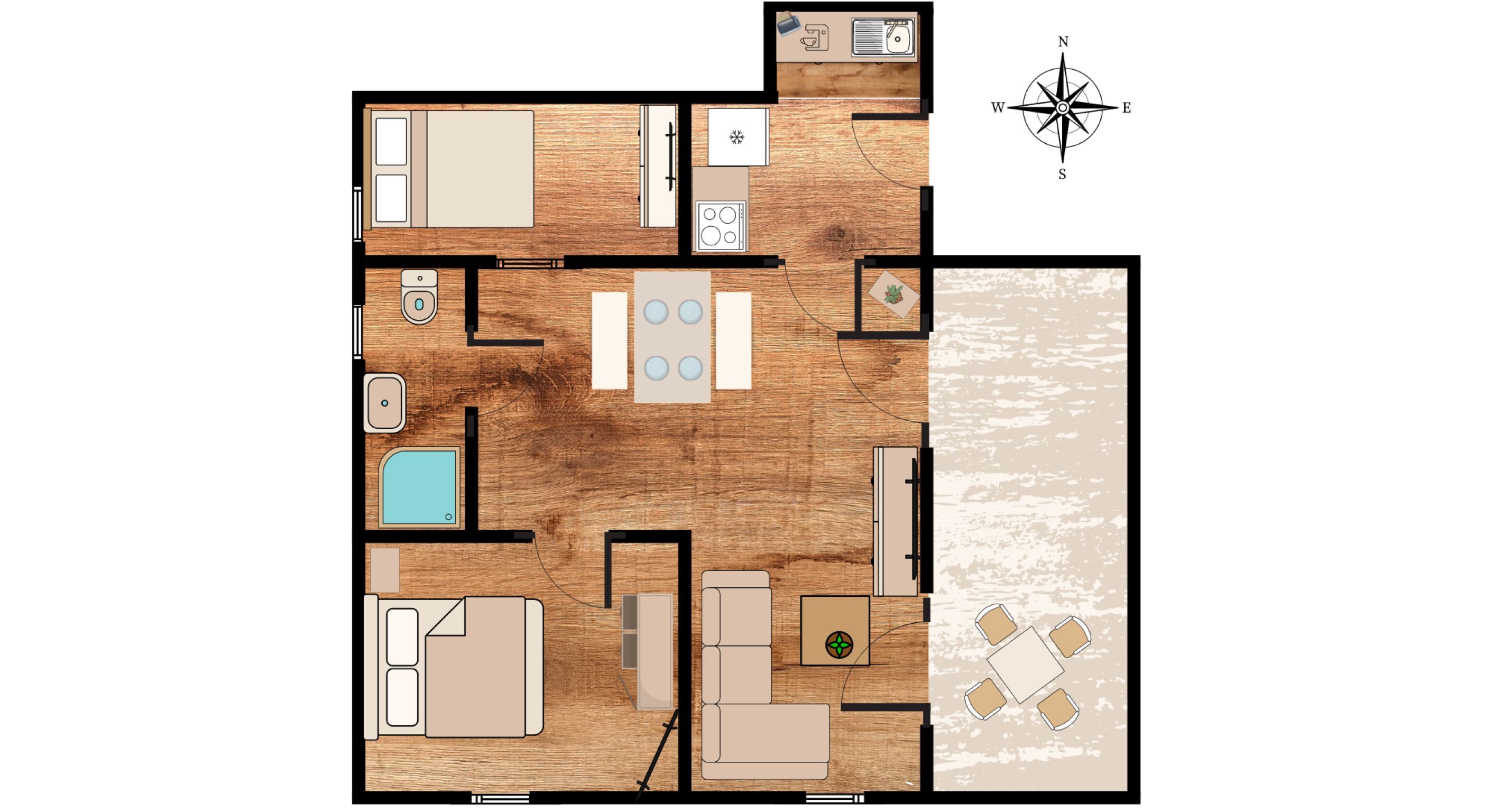 Die Wohnung TW111 ist eine funktionale Dreiraum-Wohnung mit Terrasse zur Ostseite und ca. 55 qm groß.