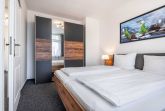Schlafzimmer mit Doppelbett und Kleiderschrank