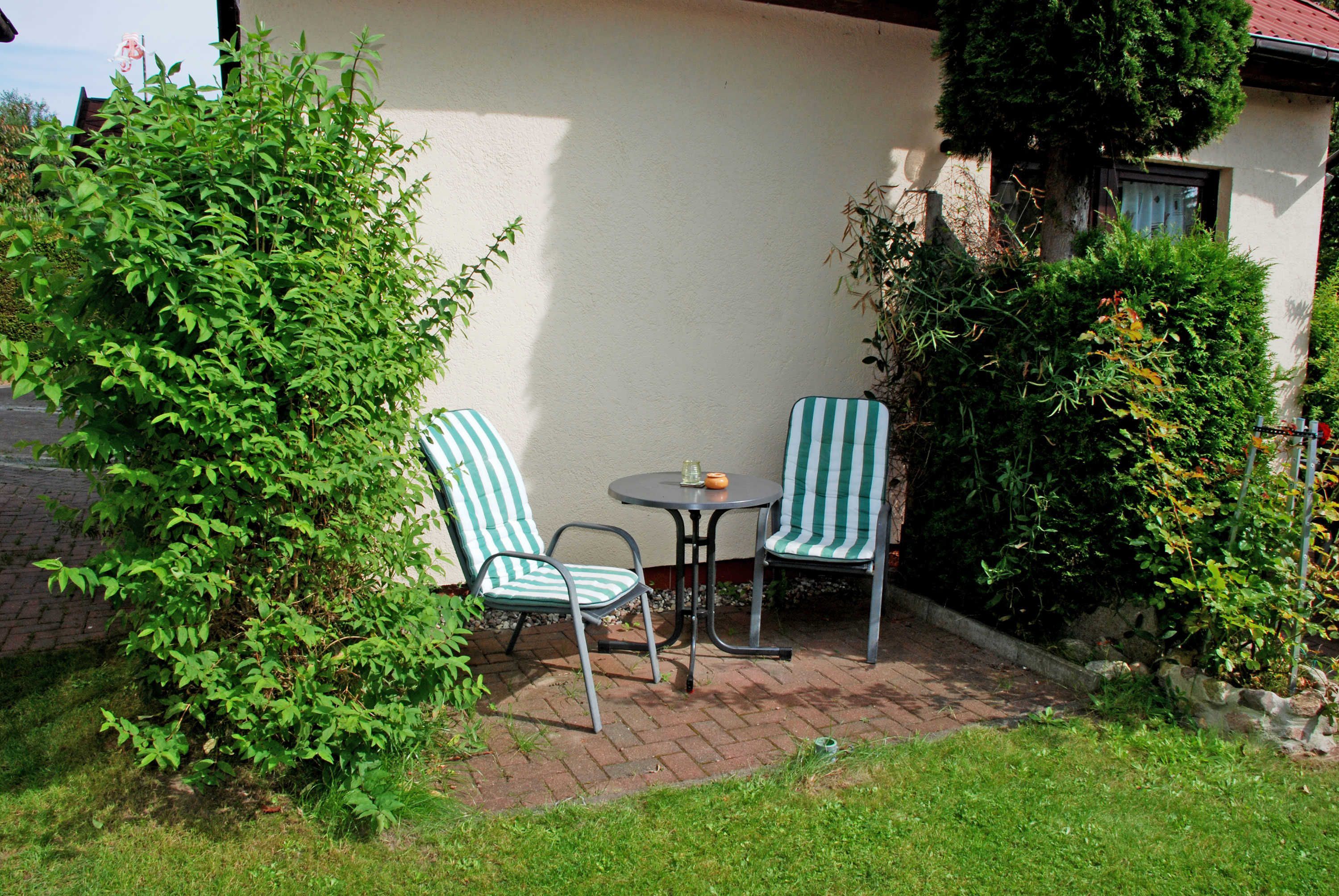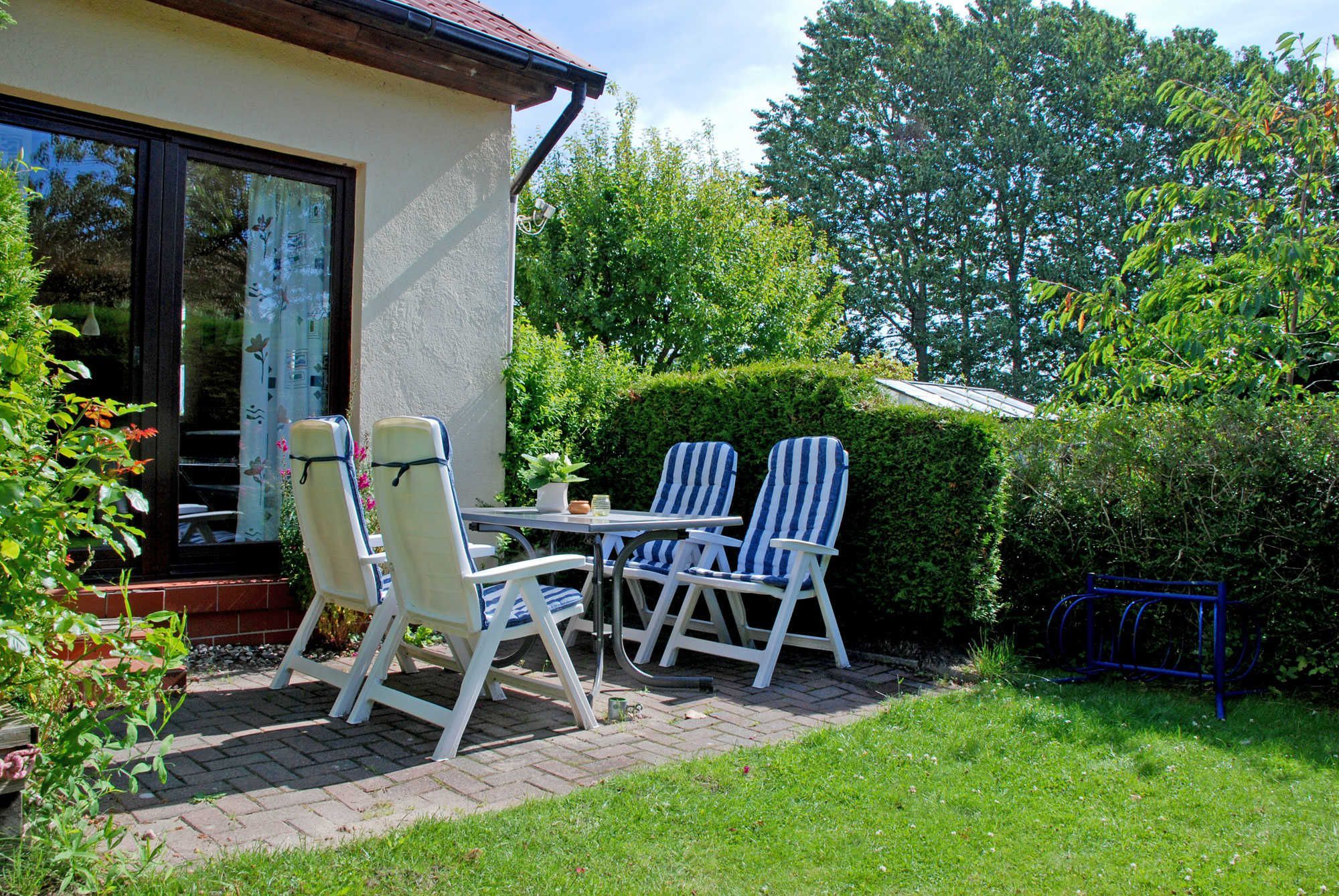 Eine Terrasse mit Gartenmöbeln steht Ihnen ebenfalls zur Verfügung. Zum Haus gehört ein PKW-Stellplatz. Auf Wunsch organisieren wir Ihnen Fahrräder vor Ort.