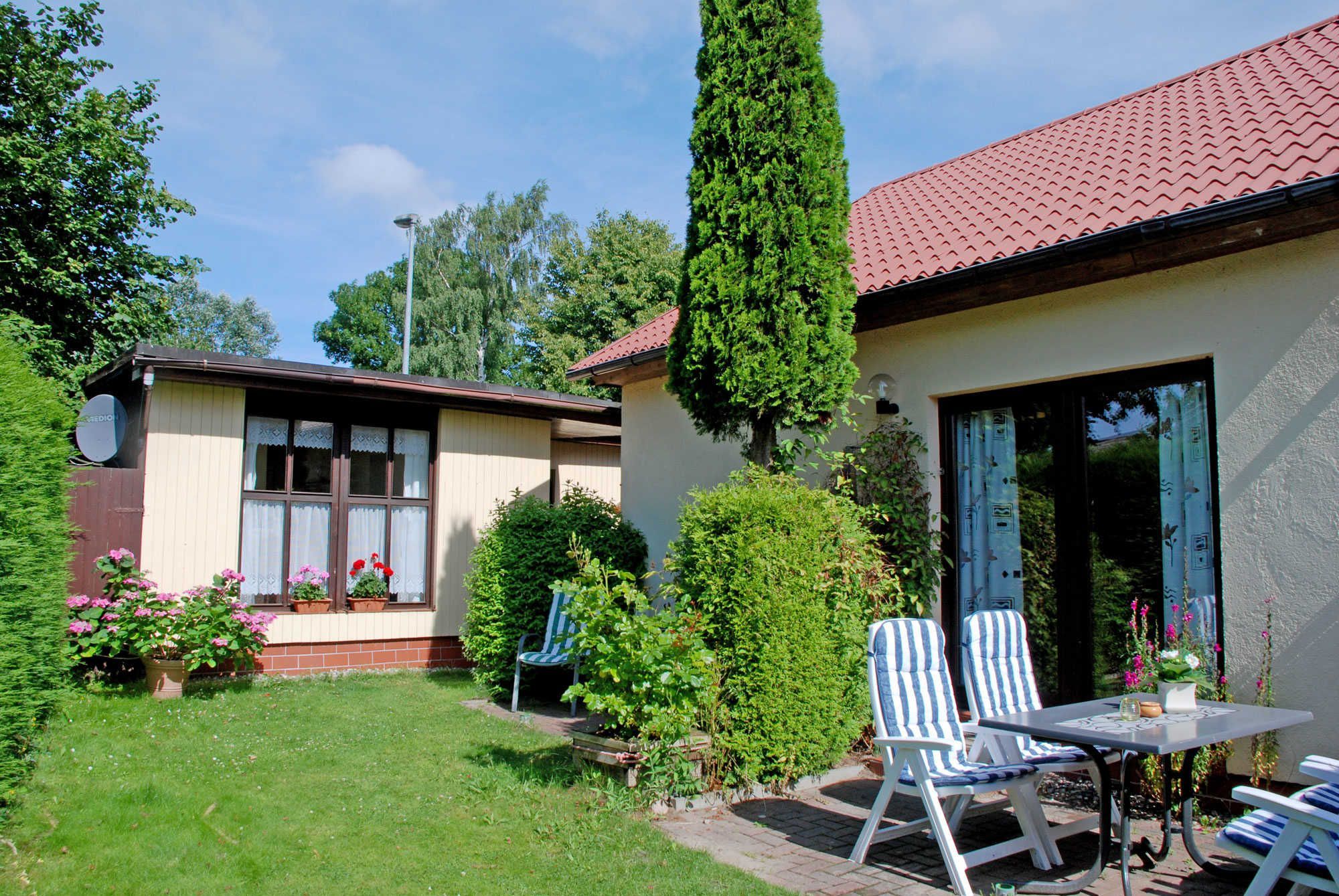 Zu den Ferienhäusern gehören je eine Sonnenterrasse mit Gartenmöbeln und Grillmöglichkeit. Bettwäsche bitten wir gegen Aufpreis dazuzubuchen oder selber mitzubringen. Handtücher werden nicht bereitgestellt. Weitere Angaben finden Sie bei der Detailbeschreibung der einzelnen Ferienhäuser. Parkplätze stehen direkt am Haus zur Verfügung. Für Ihre mitgebrachten Fahrräder steht eine Abstellmöglichkeit zur Verfügung. Leihräder werden auf Wunsch direkt an Objekt gebracht. Bis zur Bus-Haltestelle des öffentlichen Nahverkehrs sind es ca. 800 Meter. Die Haltestelle des kostenlosen Busshuttles der Kurverwaltung ist ca 50m von unseren Häusern entfernt.