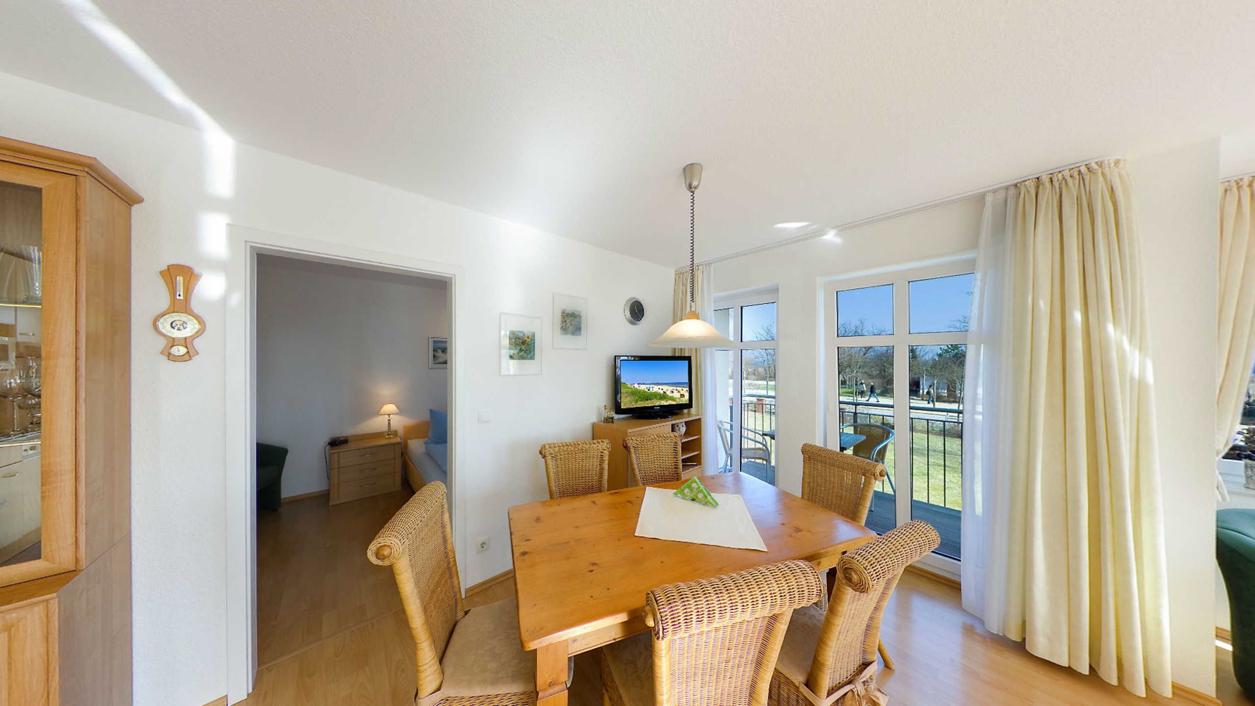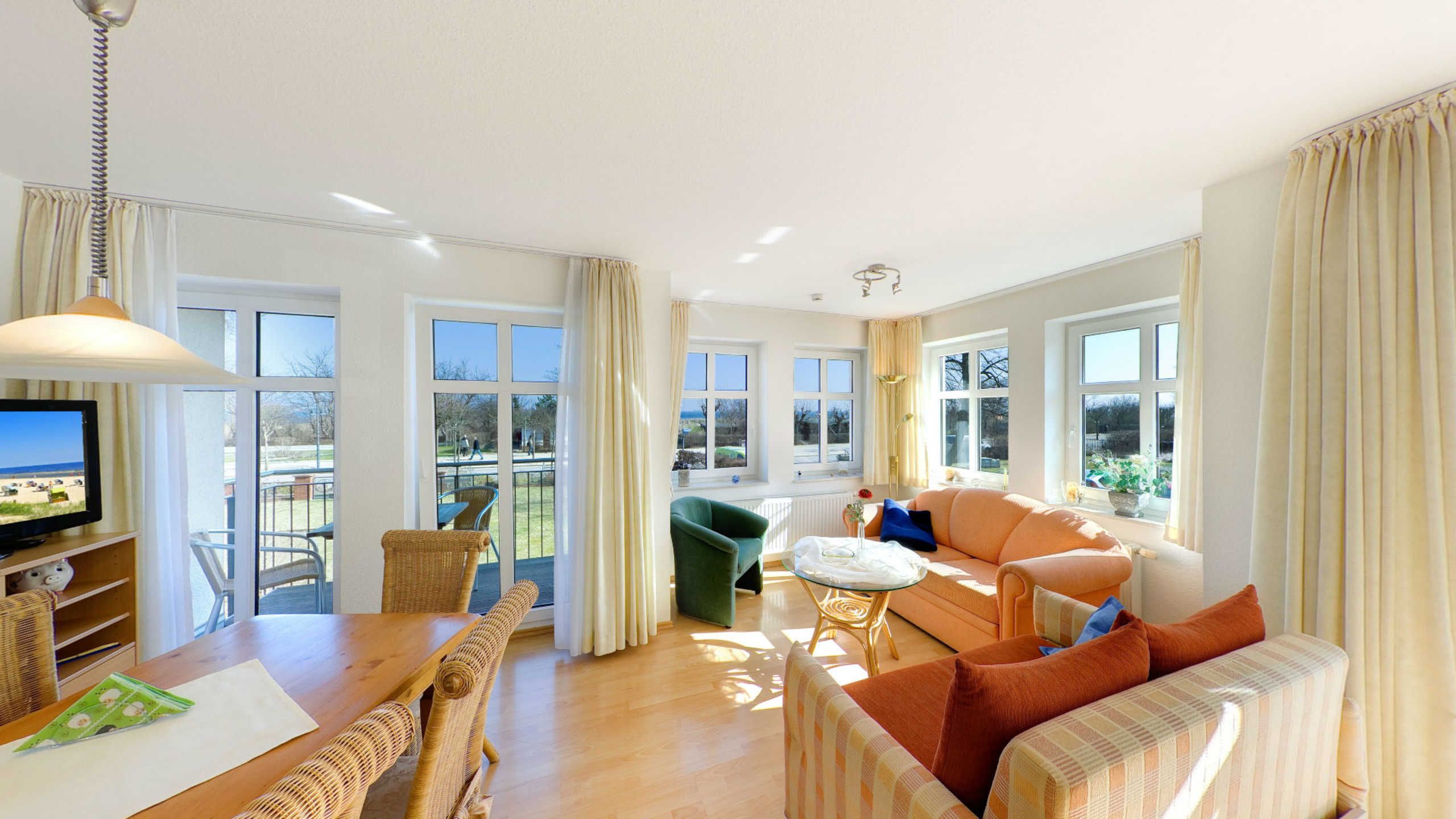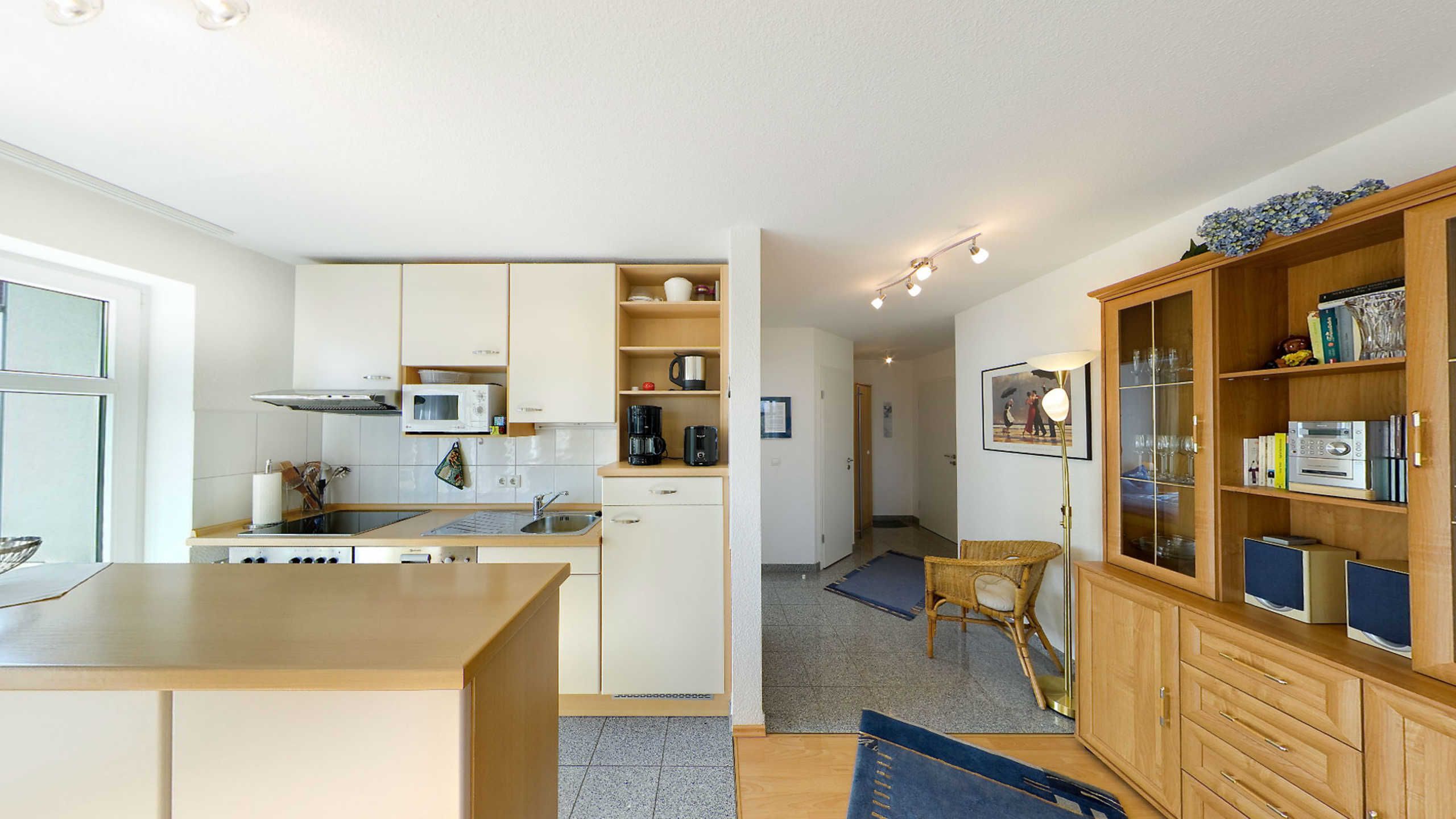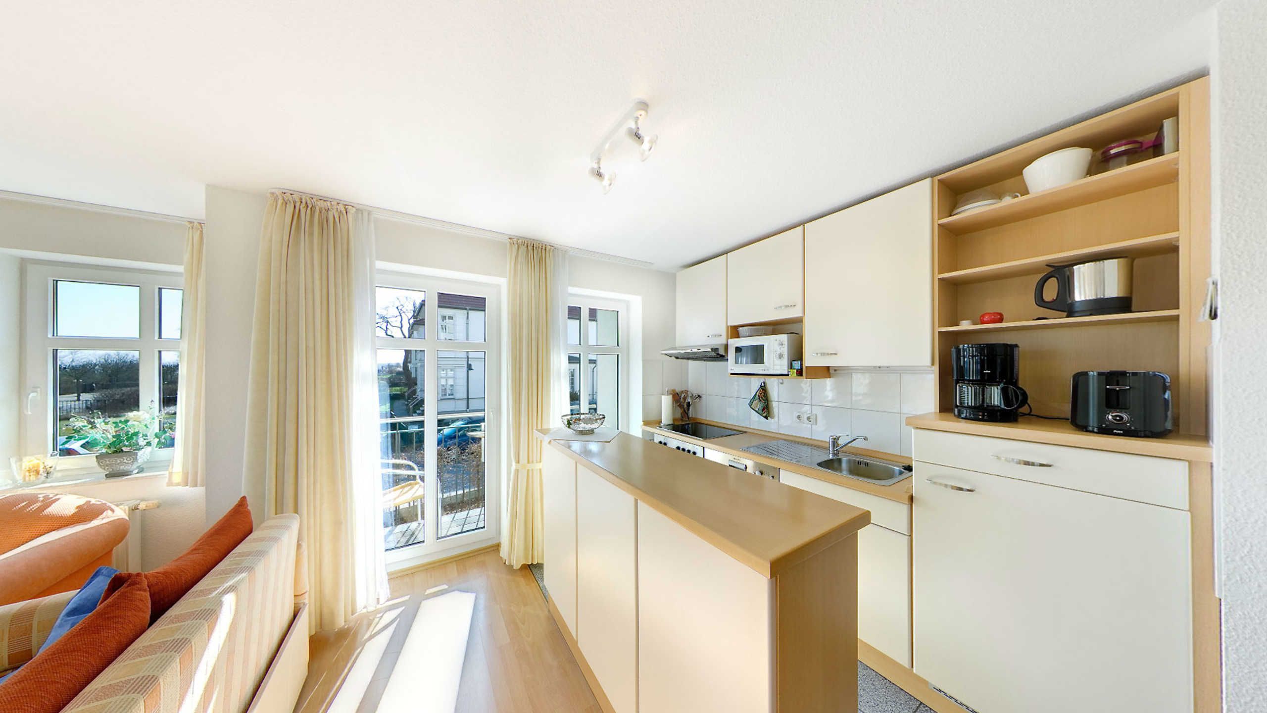 Geräumiges und geschmackvoll eingerichtetes 3-Zimmer-Appartement mit moderner guter Ausstattung. Zwei separate Schlafzimmer, Wohnzimmer mit Küchenzeile und Essplatz, Bad mit Wanne und Dusche, Gäste-WC, Balkon zur Seeseite, zus. ein kleiner Balkon neben der Küche. Die Wohnung verfügt über einen Tiefgaragen-Pkw-Stellplatz. In der Garage können auch Fahrräder und ähnliches untergestellt werden. Von der Villa Aquamarina sind es zum Ortszentrum und der Seebrücke ca. 3 Minuten zu Fuß. Zum Strand sind es 50 m.