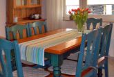 Die 65m² große ebenerdige Ferienwohnung verfügt über einen Wohnraum mit TV, DVD-Player und offener Küche mit großem Esstisch. Die Küche ist großzügig und voll ausgestattet, unter anderem auch mit Mikrowelle und Spülmaschine. Die Verbindung zum Wohnbereich gibt das Gefühl im Gesamtgeschehen dabei zu sein. Das Schlafzimmer ist mit einem Doppelbett und einem Einzelbett eingerichtet. Das Zustellen eines Babyreisebettes ist in diesem Zimmer möglich. Eine Aufbettung ist im Wohnraum auf dem Sofa möglich. Das Bad ist mit Dusche, WC und einer Waschmaschine ausgestattet.