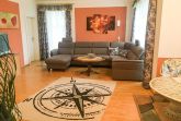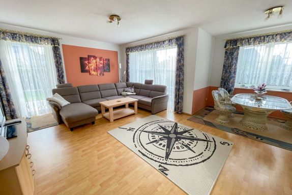 Die Ferienwohnung verfügt über 2 Schlafzimmer, ein geräumiges Bad mit Badewanne, Dusche und WC, ein großes Wohnzimmer (ca. 35m²) mit gesondertem Essbereich, gemütlicher Sitzecke, Flat-TV und einer voll eingerichteten Küche mit Geschirrspüler, 4-fach-Ceranfeld, Backofen, Kühlschrank, Mikrowelle, Kaffeemaschine, Toaster, Wasserkocher, etc..