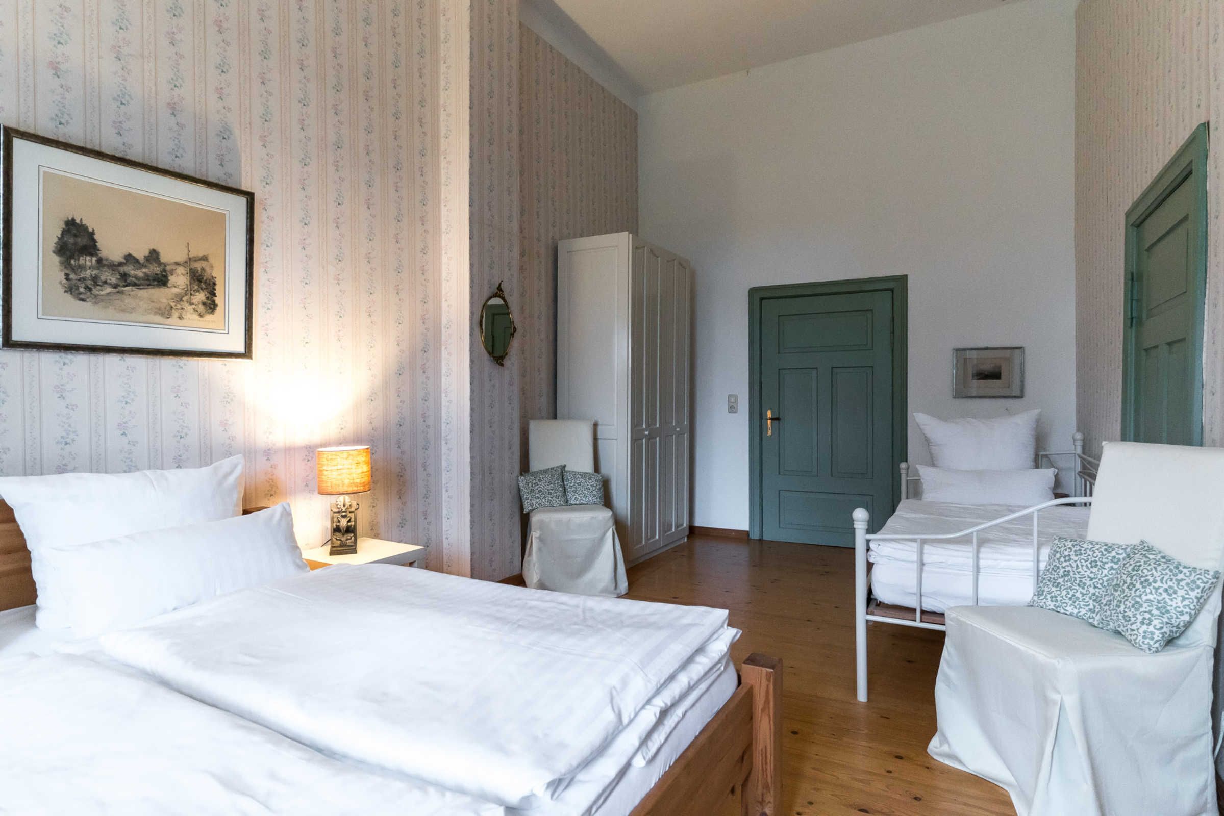 • 2 Schlafzimmer je mit Doppelbett und Einzelbett:, Bettwäsche: Übergröße 155x220cm, Kissen groß und klein