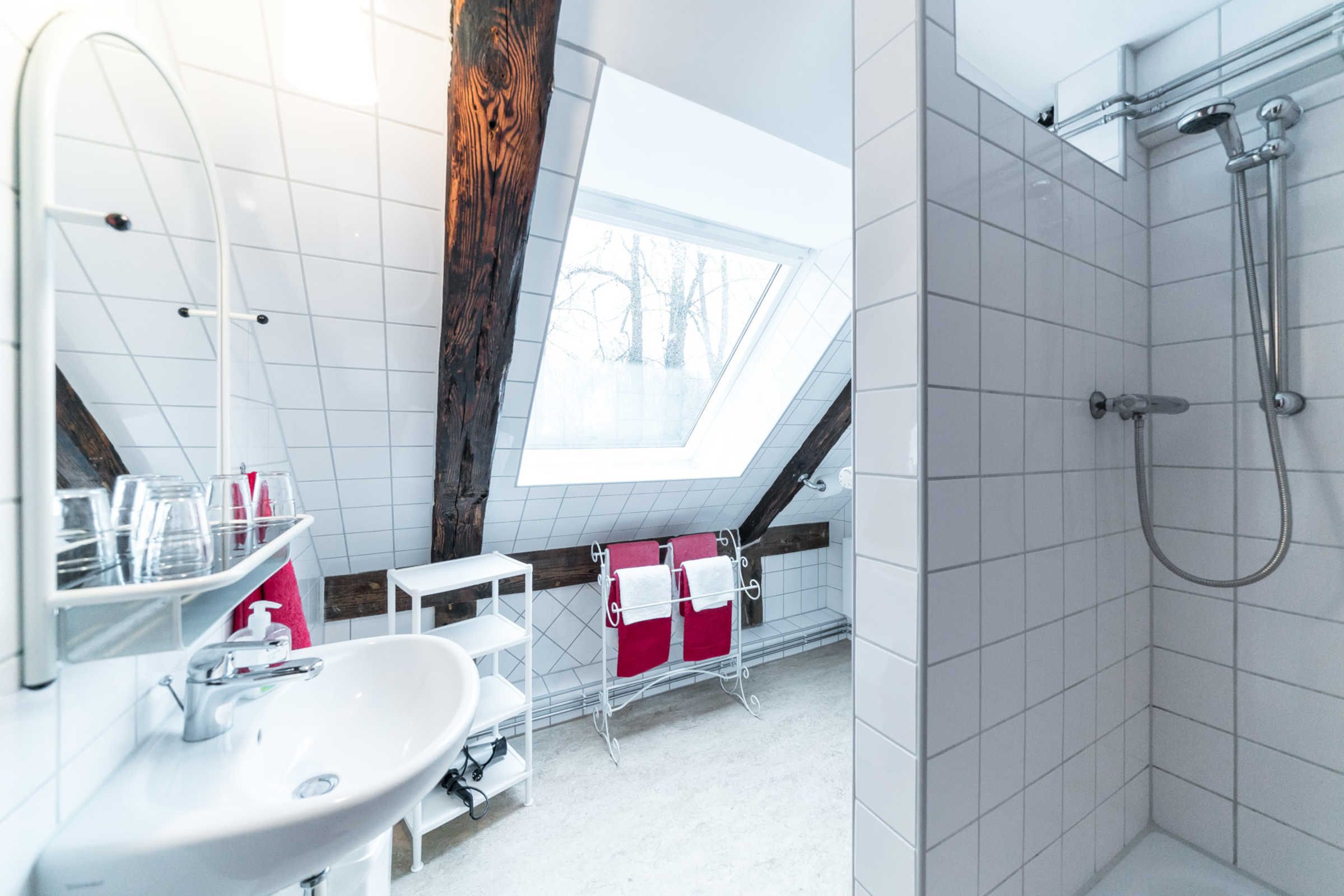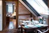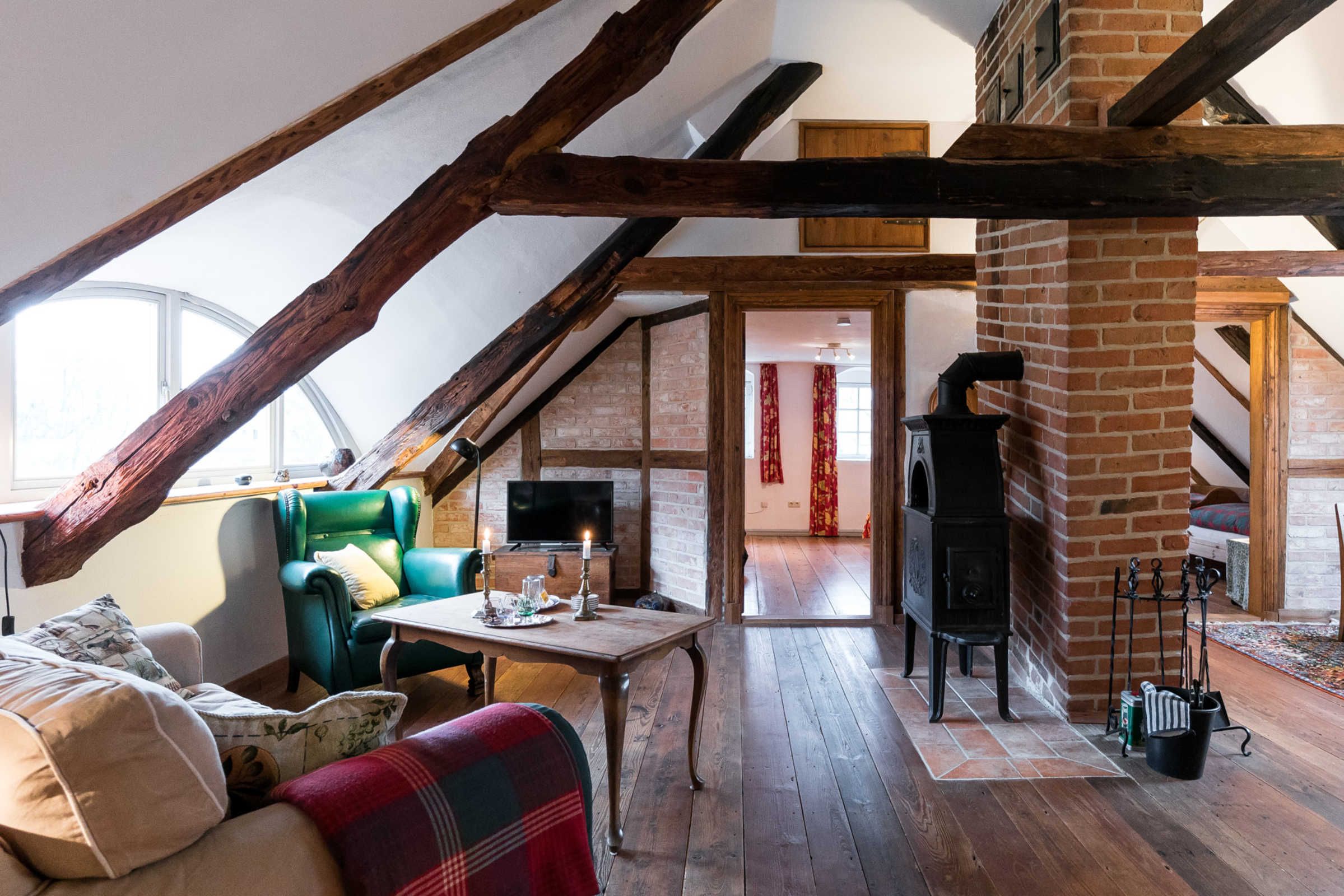 • rustikales Ambiente mit Dachschrägen, alten Dielenböden und alten Türen