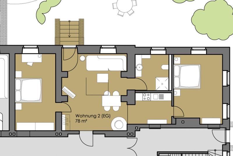 Aus der Wohnung gibt es einen direkten Zugang zum privaten Gartenbereich.