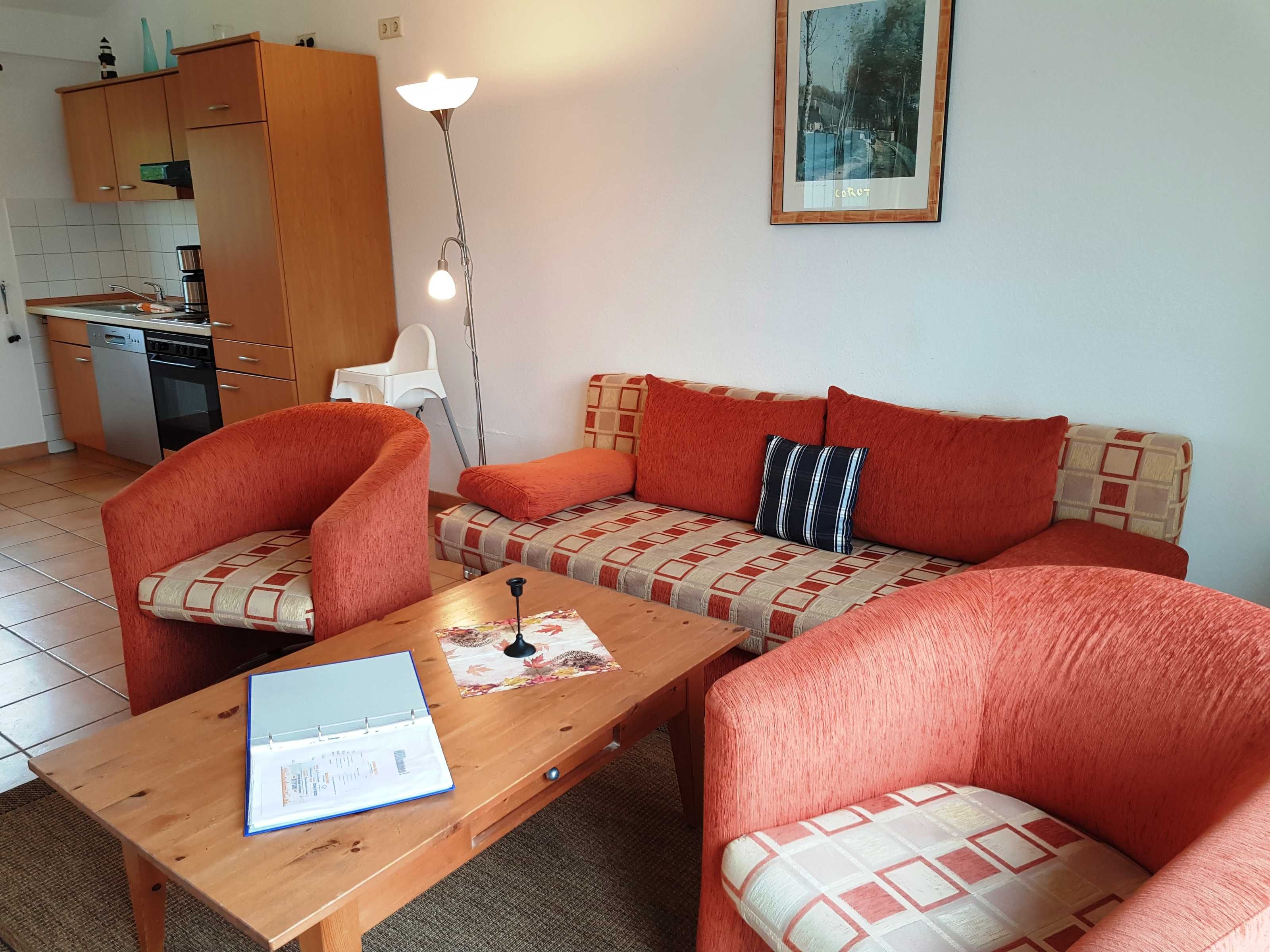 Bei diesem Appartement handelt es sich um ein Zweiraumappartement mit ca. 65 m² Wohnfläche und 2 dachterrassen. Die Nichtraucherwohnung verfügt über ein Wohnzimmer mit TV , einer Schlafcouch für 2 Personen, eine sehr gut ausgestattete Küchenzeile im Wohnbereich mit Backofen und Geschirrspüler, ein Duschbad, und ein Schlafzimmer mit einem Doppelbett.