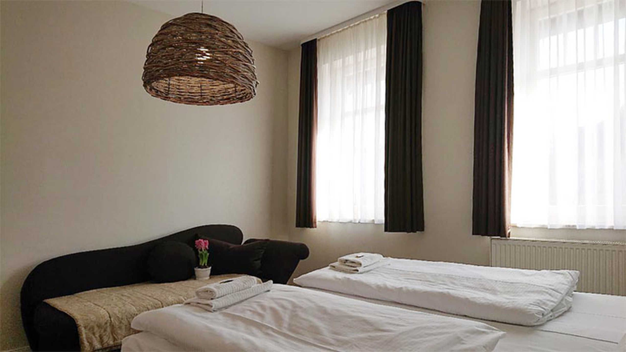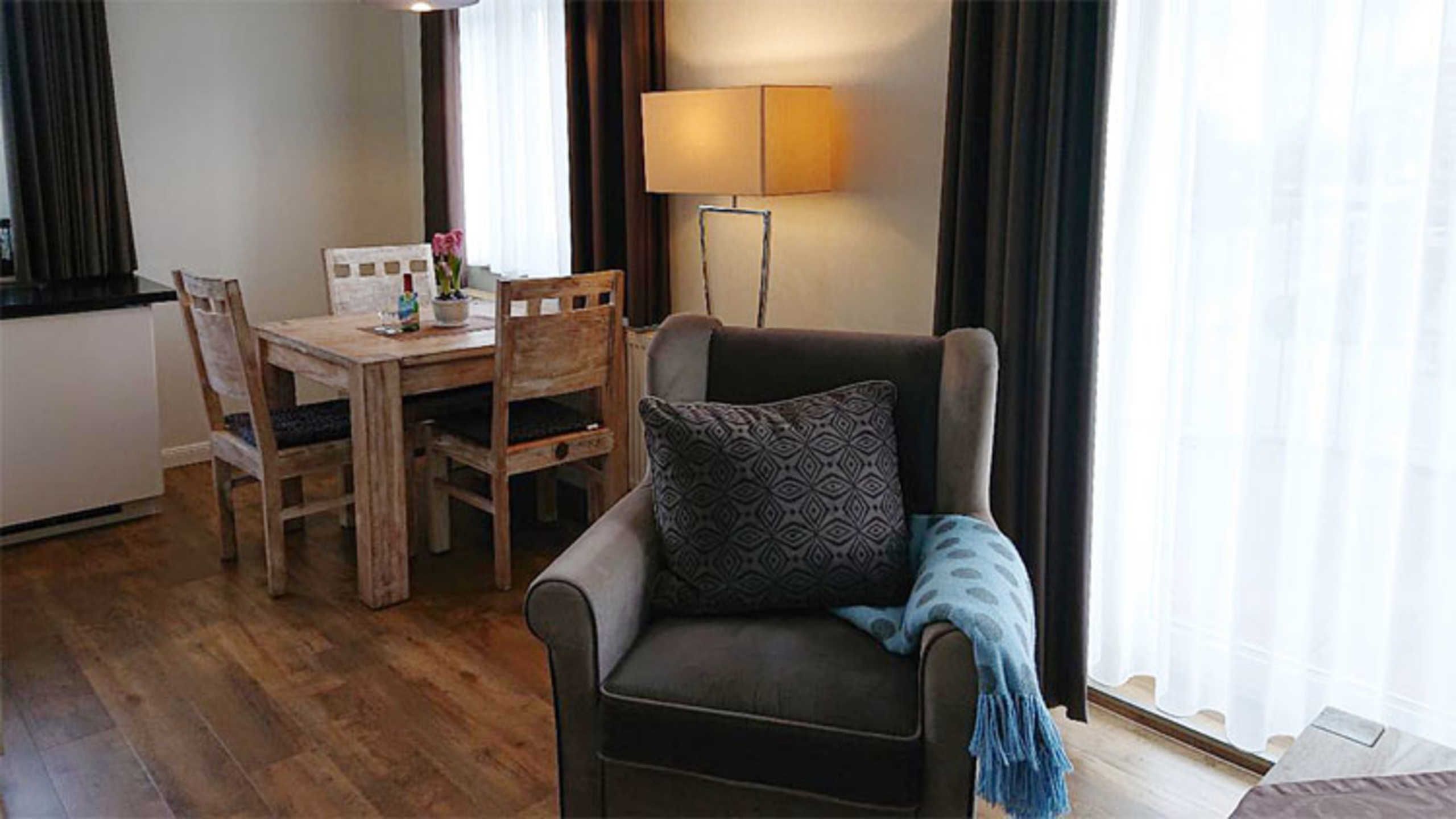 Unsere Zweiraumappartements für bis zu drei Personen haben eine Wohnfläche von 35 bis 55 m². Im Wohnzimmer laden gemütliche Sessel oder Couchen zur Entspannung ein.