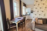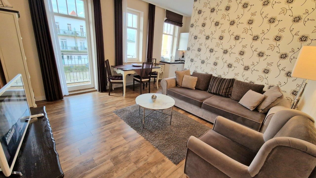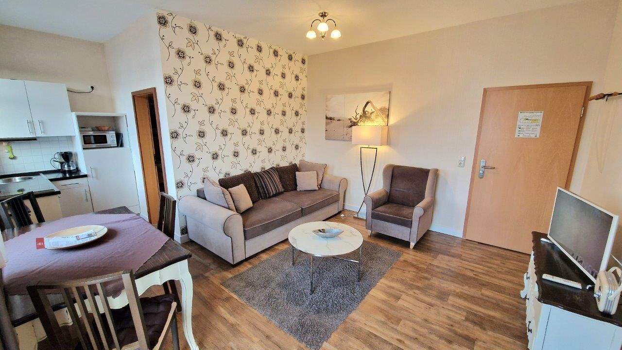 Unsere Zweiraumappartements für bis zu drei Personen haben eine Wohnfläche von 35 bis 55 m². Im Wohnzimmer laden gemütliche Sessel oder Couchen zur Entspannung ein.