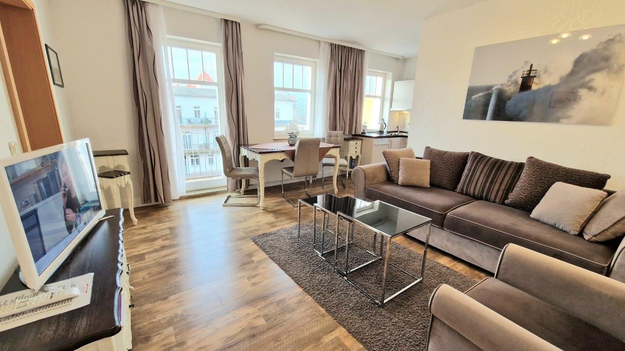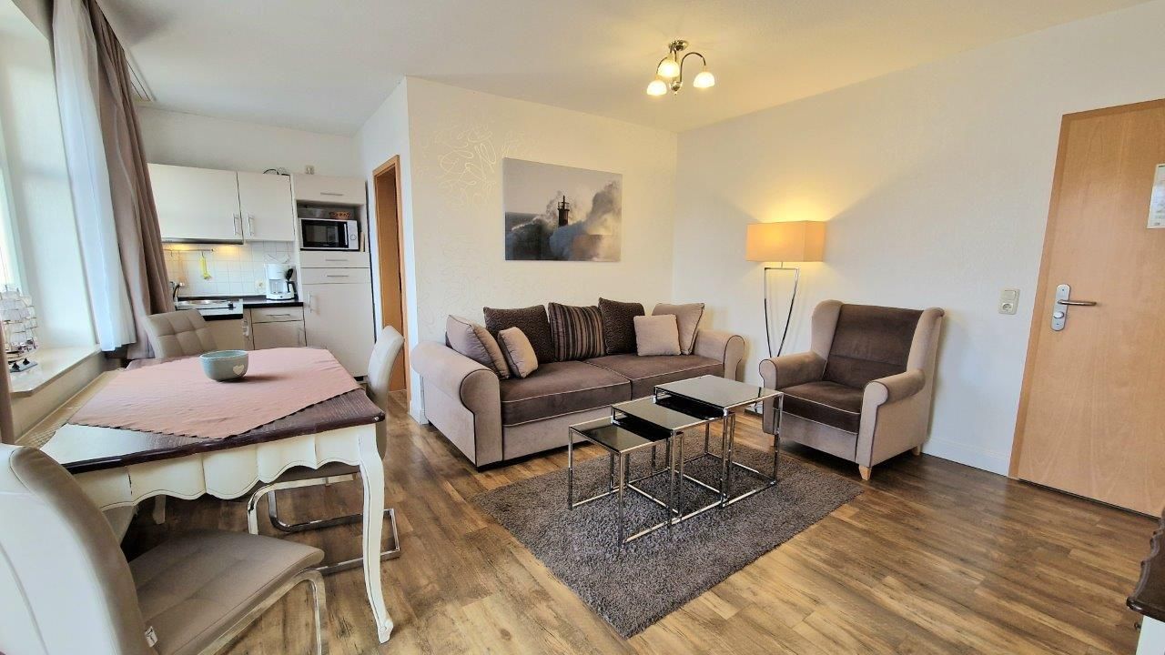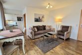 Unsere Zweiraumappartements für bis zu drei Personen haben eine Wohnfläche von 35 bis 55 m². Im Wohnzimmer laden gemütliche Sessel oder Couchen zur Entspannung ein.