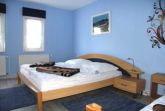 Die Nasszelle ist mit Waschbecken, WC und Dusche ausgestattet. Im Schlafraum können drei Personen schlafen: zwei Personen im geräumigen Doppelbett, eine Person im Einzelbett. Ein großer Kleiderschrank bietet Platz für die Urlaubsgarderobe. Es findet sich auch noch ein Platz für ein Reisebett für Kleinkinder, das nach Voranmeldung zur Verfügung gestellt wird.