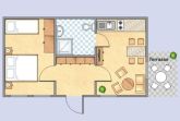 Der Bungalow verfügt über drei Räume: Schlafzimmer, Badezimmer und Wohnküche. Der Bungalow ist ebenerdig und kann mit bis zu drei Personen benutzt werden.