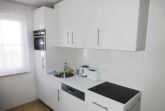 Im integrierten Küchenbereich befinden sich unter anderem ein Induktions-Herd (4 Platten), ein Geschirrspüler, ein Kühlschrank, ein kleiner Backofen mit integrierter Mikrowelle, eine Kaffeemaschine, ein Mixer und ein Wasserkocher.