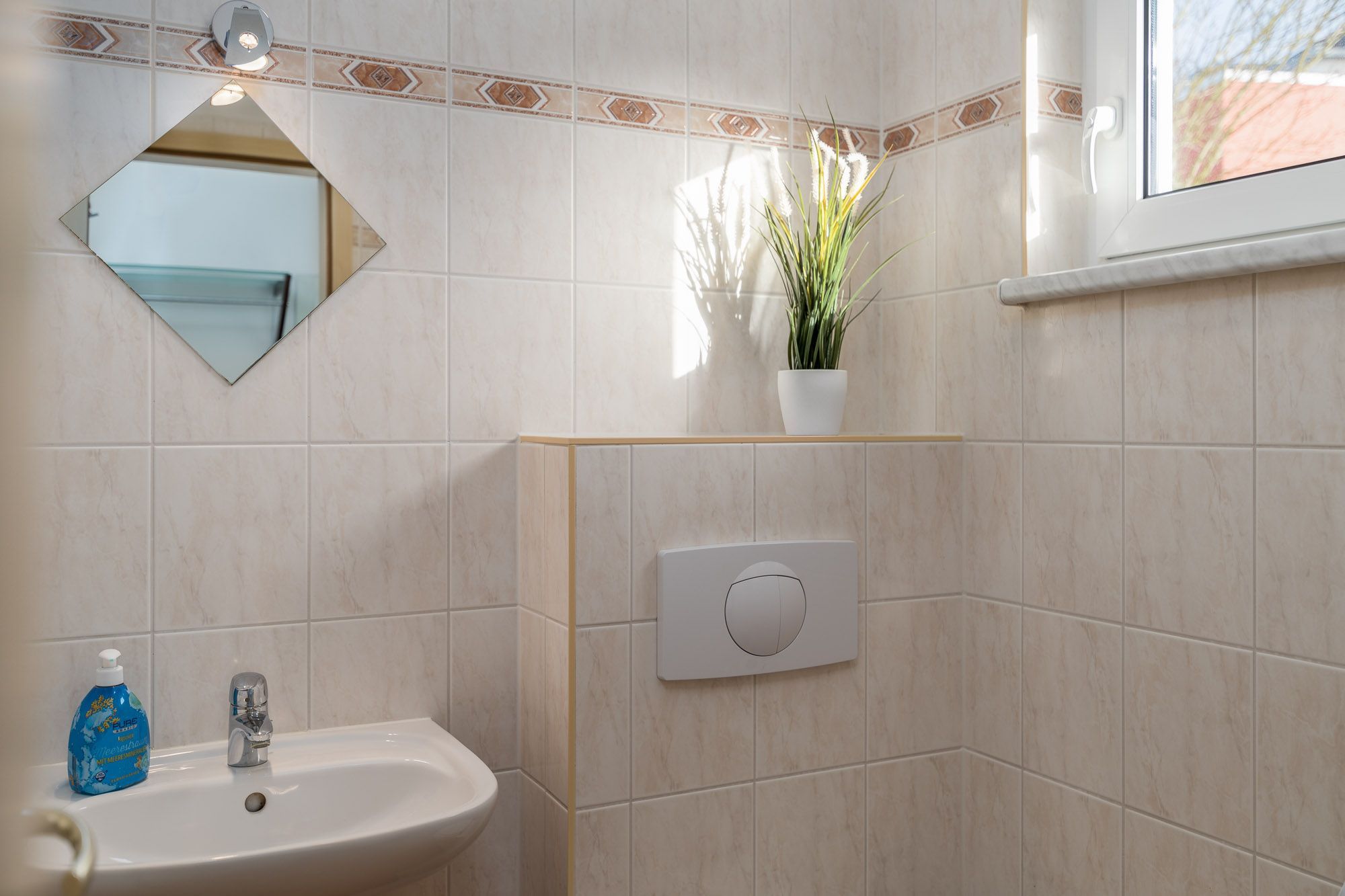 Eine moderne Heizungsanlage mit kombinierter Fußbodenheizung in Wohnzimmer, Küche, Badezimmer und Gäste-WC lädt zum ganzjährigen Besuch ein. Eine Wäschespinne im Garten und ein Staubsauger in der Unterkunft erleichtern längere Aufenthalte.