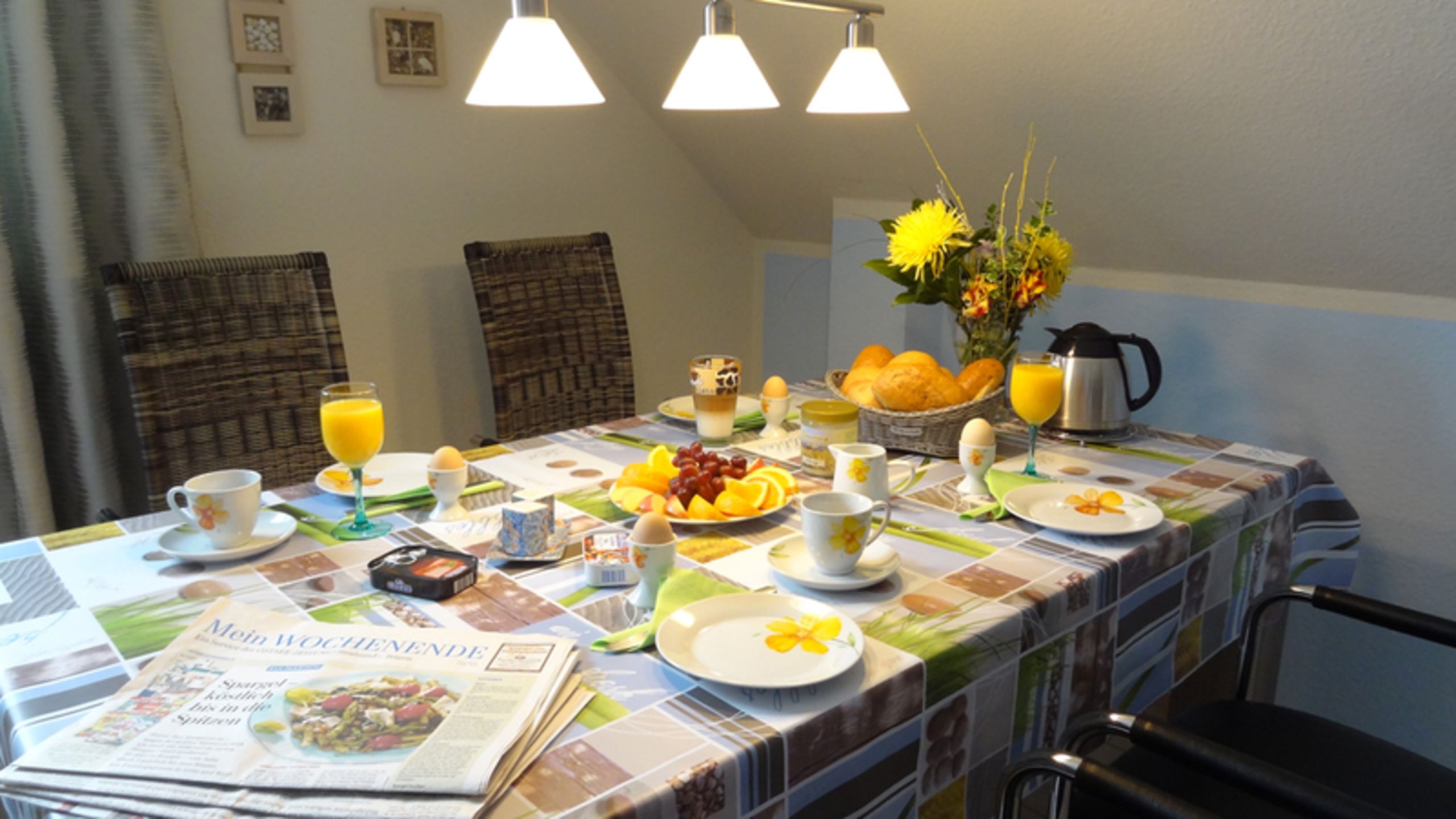 Unser Haus verfügt über modern und schön eingerichtete 3 Sterne Ferienwohnungen von 42 - 55 m², welche eine wohnliche Komfortausstattung bieten und sich für 2 - 4 Personen eignen. Die Fewos sind mit Schlafzimmer, Wohnzimmer mit kompl. Küchenzeile und seperater Essecke, sowie wertigem Bad ausgestattet. Zusätzlich bieten wir Ihnen einen Bahnhofstransfer, Fahrradverleih nach Absprache, Brötchen-, Getränke- und Einkaufsservice mit an. Handtücher und Bettwäsche (Allergikerbetten) sind ebenfalls vorhanden. Ein Parkplatz auf dem Grundstück mit Ladestation für E-Autos und eine Sitzgelegenheit im Freien sind inclusive. Die Wohnungen verfügen über CD-, DVD-, Blu-Ray-Player und schnellem WLAN im gesamten Haus. Um unseren Gästen den Aufenthalt so angenehm wie möglich zu gestalten, haben wir unsere Ferienwohnungen liebevoll, individuell und mit Sorgfalt eingerichtet. Gemütliche Essecken und das angenehme Ambiente laden zum Relaxen und Entspannen ein.
