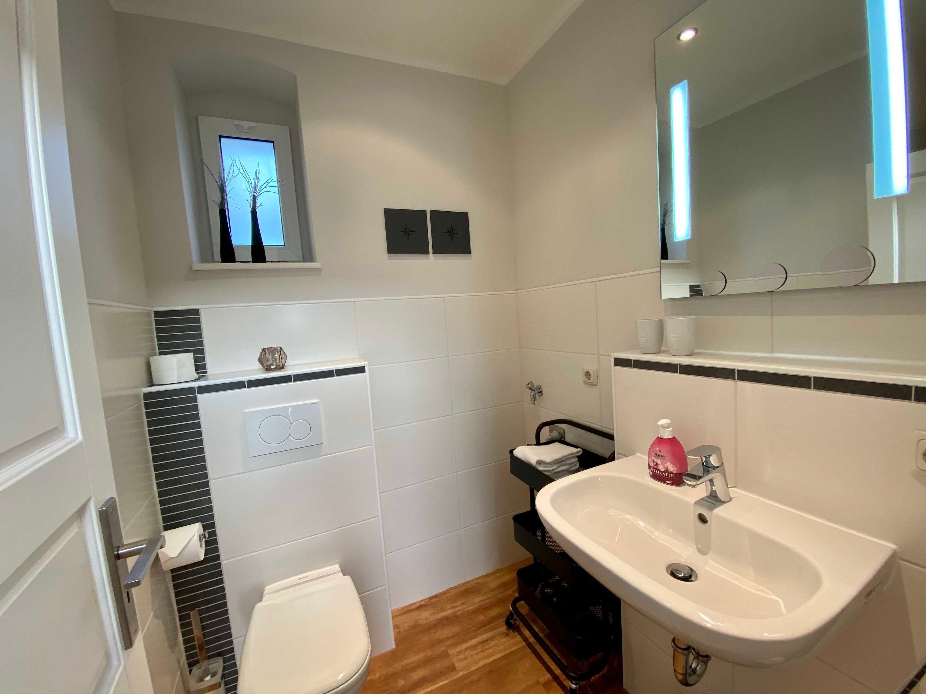 Die Kleine Anna hat ein sehr großzügiges Schlafzimmer, in dem neben dem modernen Boxspringbett und dem großen Kleiderschrank noch genügend Bewegungsspielraum bleibt. Es ist mit einem Flachbild-TV versehen. Im Badezimmer mit Dusche wurden hochwertige Materialien verwendet.