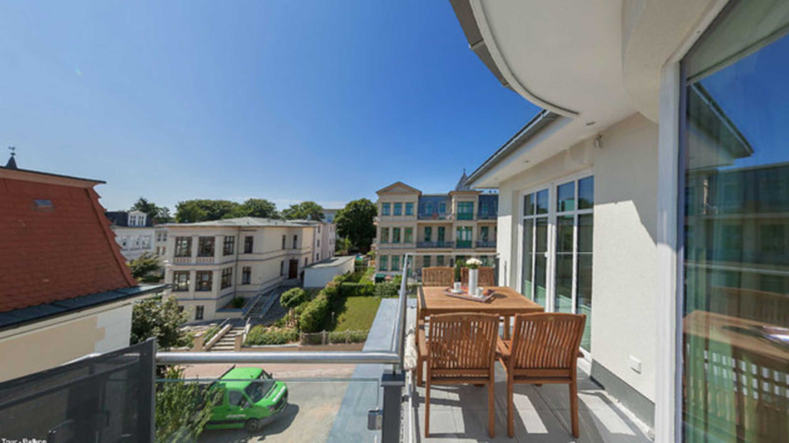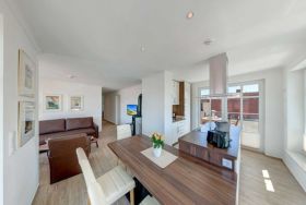 SEEBLICK! MODERN und mit 2 DACHTERRASSEN, FAHRSTUHL, nur ca. 100 m zur Strandpromenade! Komfortabel eingerichtete 3 - Zimmer - Wohnung mit sehr guter Ausstattung! 2 separate Schlafzimmer, 2 Bäder (1 Dusch- und Wannenbad ensuite, 1 Duschbad) , Wohnbereich, Küchen- und Eßbereich, 2 möblierte Dachterrassen mit je 22 qm Fläche, eine davon mit eigenem STRANDKORB, KAMINOFEN, FUßBODENHEIZUNG. Die Wohnung nimmt das gesamte Dachgeschoß des vorderen Hausteils ein. Die Wohnung verfügt über einen Pkw-Stellplatz in der hauseigenen Tiefgarage. Fahrradabstellfläche ist vorhanden. Vom Haus aus können Sie das Ortszentrum und die bekannte Ahlbecker Seebrücke in ca. 2 Minuten zu Fuß erreichen.