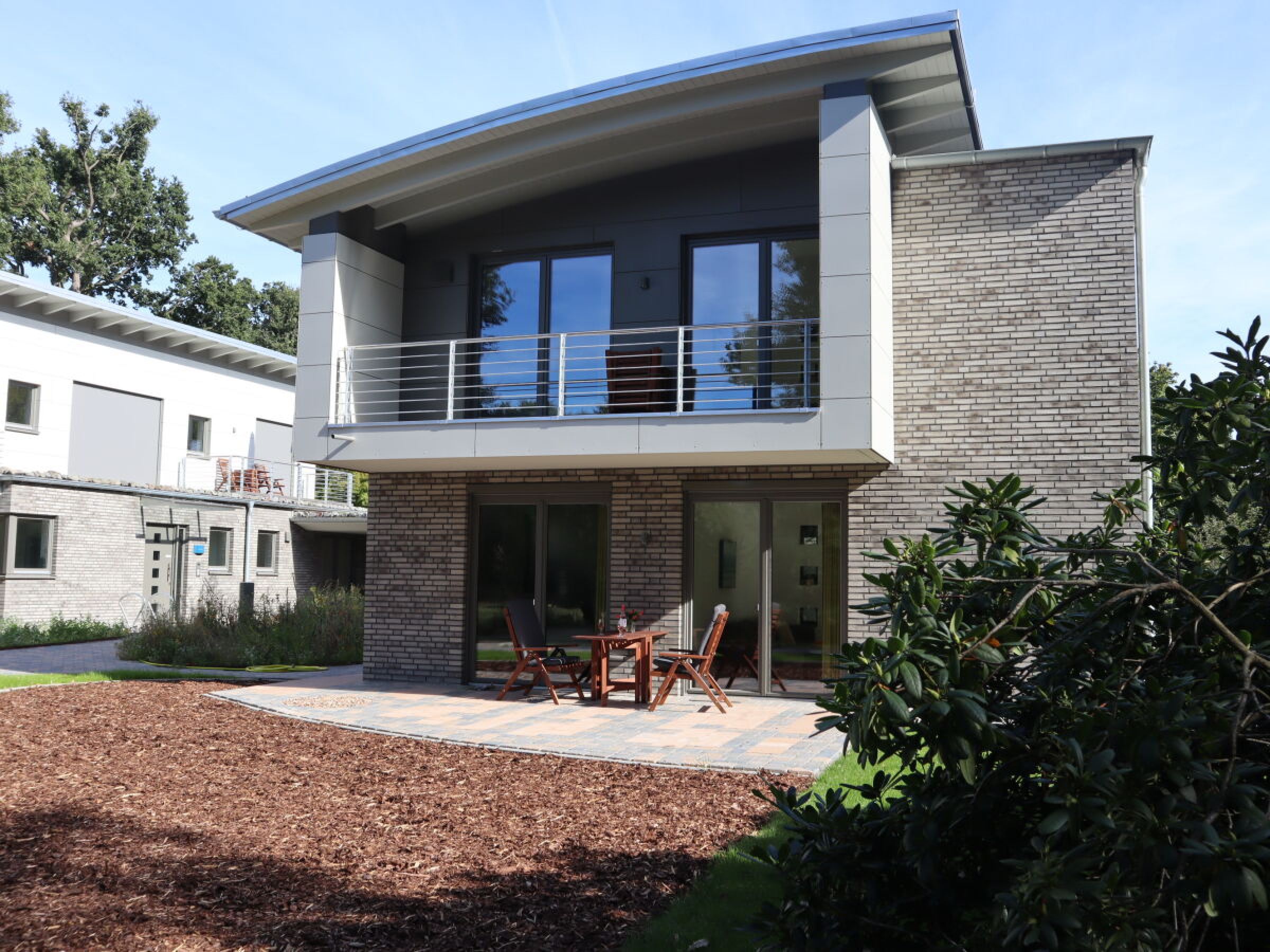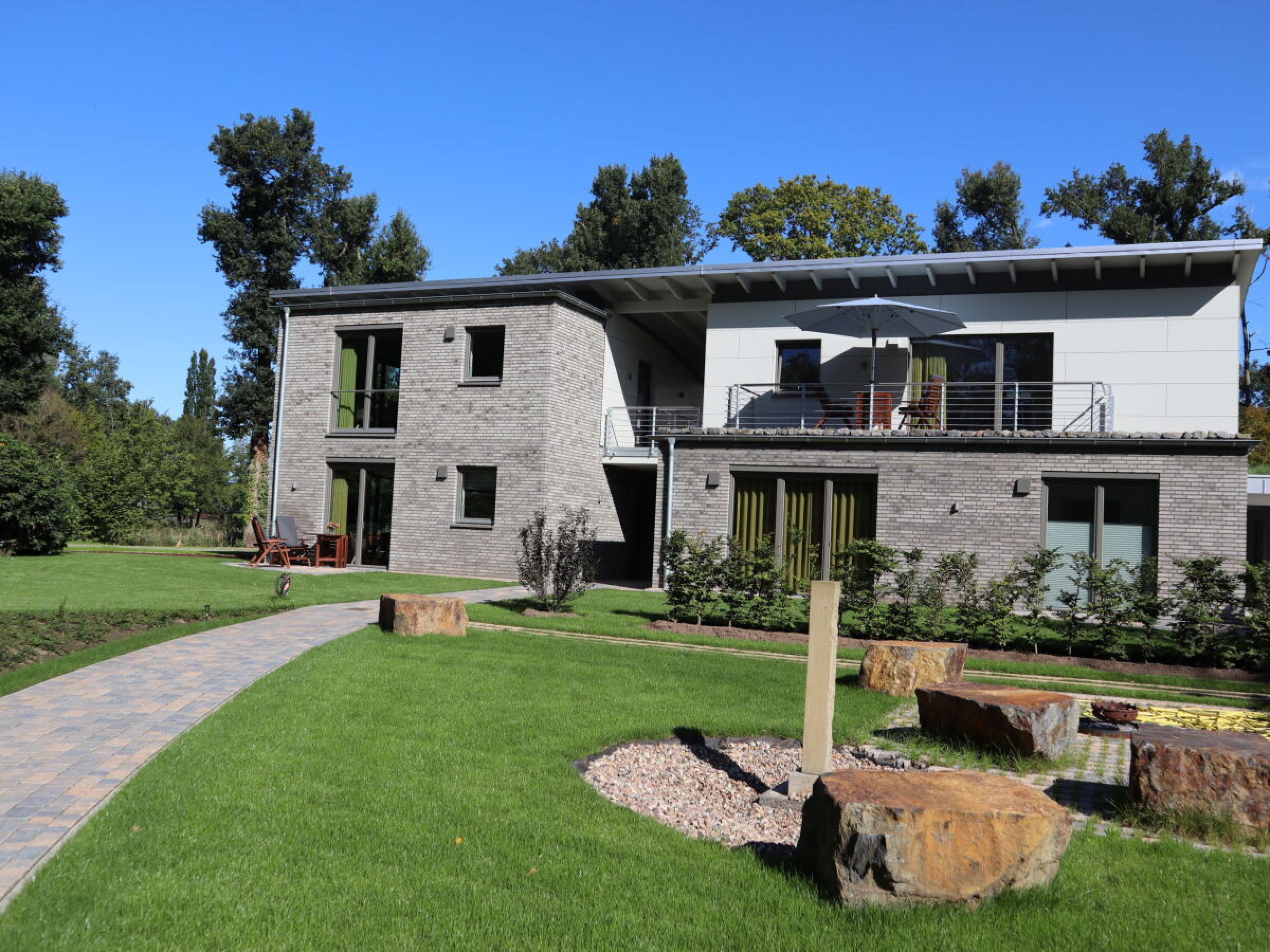 Unsere 5 hochwertig und liebevoll eingerichteten Ferienwohnungen wurden Mitte 2020 fertiggestellt. Gebaut wurden diese auf einem Grundstück im Landschaftsschutzgebiet inmitten eines bezaubernd angelegten neuen Gartens, umgeben von altem Baumbestand. Das Zwischenahner Meer ist durch zwei Baumreihen hindurch sichtbar und nur wenige Gehminuten entfernt. Direkt angrenzend verläuft der Kirchweg. Ein Rad- und Wanderweg, der sich bestens als Ausgangspunkt für Spaziergänge zum Ortskern mit diversen Einkaufsmöglichkeiten, Restaurants für jeden Geschmack, Kurzentrum und vielen Kultur-, Sport- und Freizeiteinrichtungen, aber auch für wunderschöne Touren rund ums Meer anbietet. Die Namen unserer Ferienwohnungen leiten sich vom an der Straße „Seerosenweg“ gelegenen Grundstück und den Zahlen „EINS, ZWEI, DREI, VIER und FÜNF“ auf Plattdeutsch ab. Teil der Gebäudeanlage sind neben den Ferienwohnungen auch die Wohnung der Vermieter sowie das „Gesundheitshaus Seerose“. Dieses steht für „Prävention und Ursachenmedizin unter einem Dach“. Das Therapeuten-Team eint der ganzheitliche Ansatz von Körper, Geist und Seele. Auch die Teilnahme an Yogastunden im Gesundheitshaus ist auf Anfrage für Gäste der Ferienwohnungen möglich. Sogar eine Personal-Trainerin kann bei frühzeitiger Anmeldung gebucht werden.