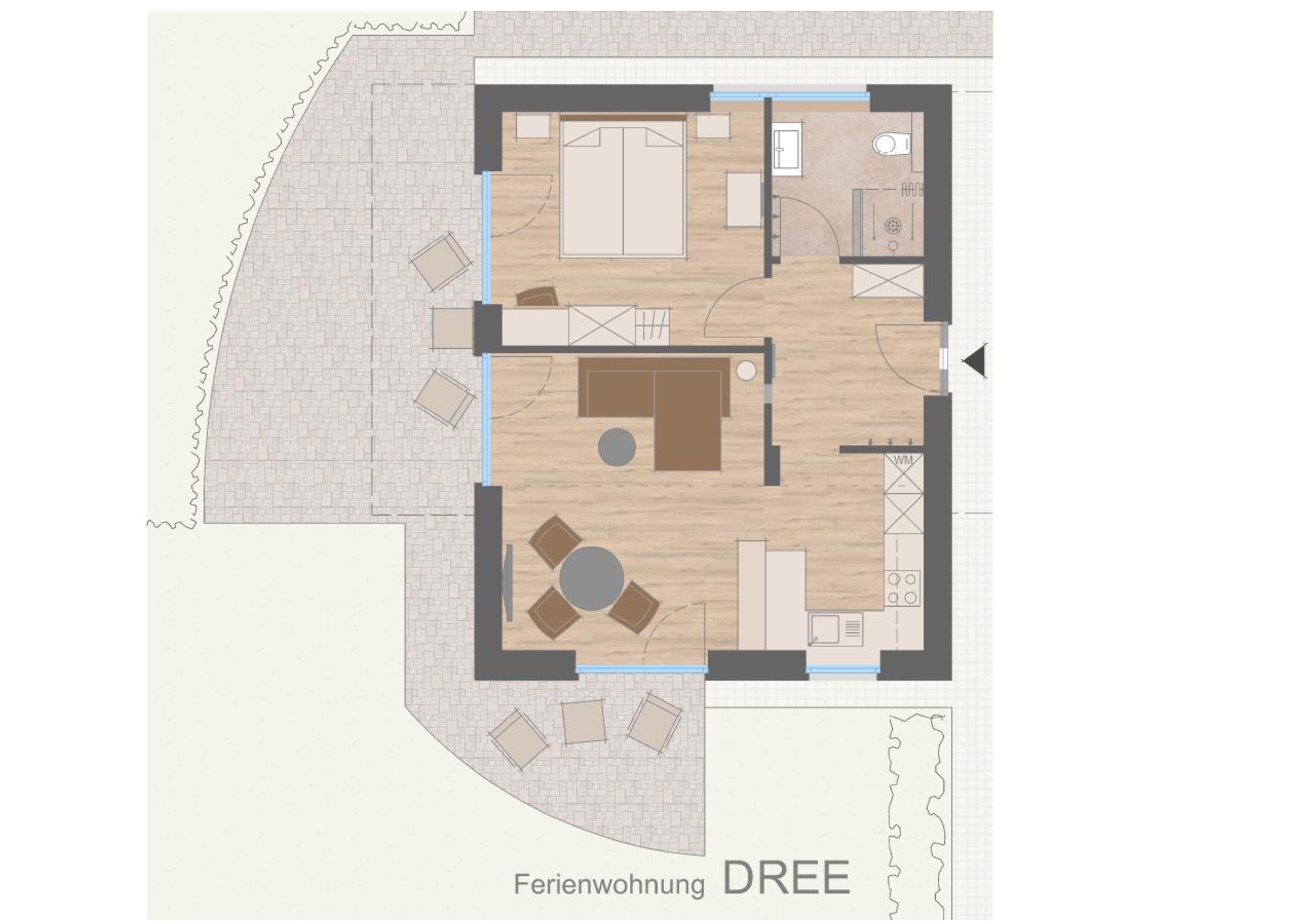 Ferienwohnungen Seerose - Seerose DREE, 59qm, Süd- und Westterrasse, 1 Schlafzimmer, max. 2 Personen