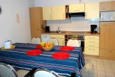 Die Küche mit einer Essecke ist in das Wohnzimmer integriert und ist unter anderem mit einem Cerankochfeld, einer Backröhre, einer Geschirrspülmaschine, einem Kühlschrank, einer Mikrowelle, einem Wasserkocher und einer Kaffeemaschine ausgestattet.