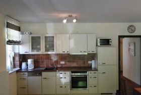 Die Küche ist hochmodern und offen eingerichtet: hier finden Sie eine Kühl- und Gefrierkombi, Spülmaschine, Mikrowelle, Backofen, Ceranfeld-Herd, Kaffeevollautomat, Wasserkocher, Mixer, Toaster und Pürierstab. Die Vollausstattung umfasst Geschirr, Töpfe, Pfannen, Auflaufform, Schüsseln, Korkenzieher, Dosenöffner … usw.