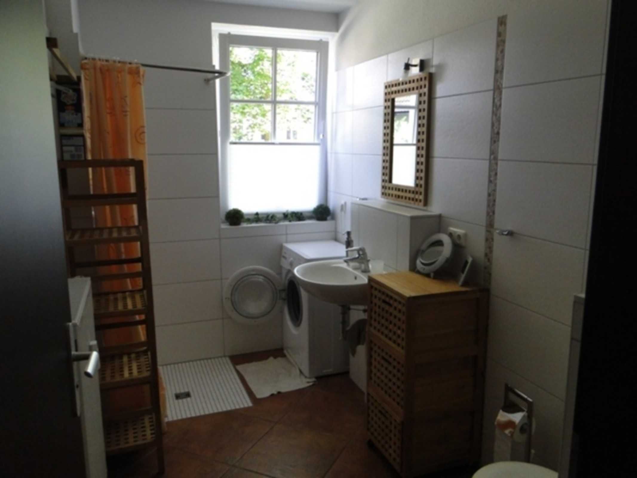 Im Duschbad befindet sich die Waschmaschine, Trockner gibt es im Trockenkeller.
