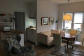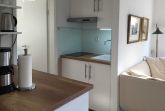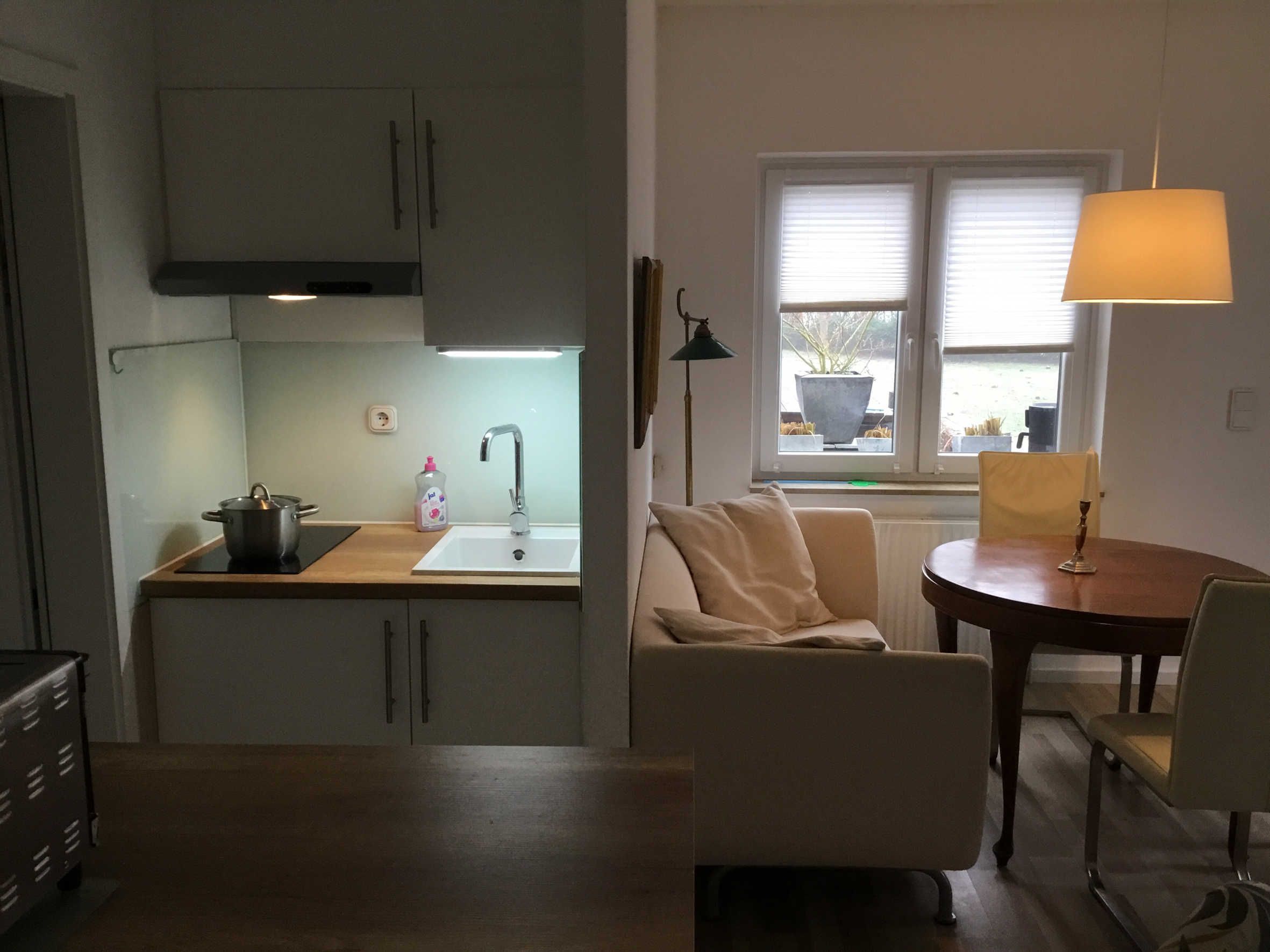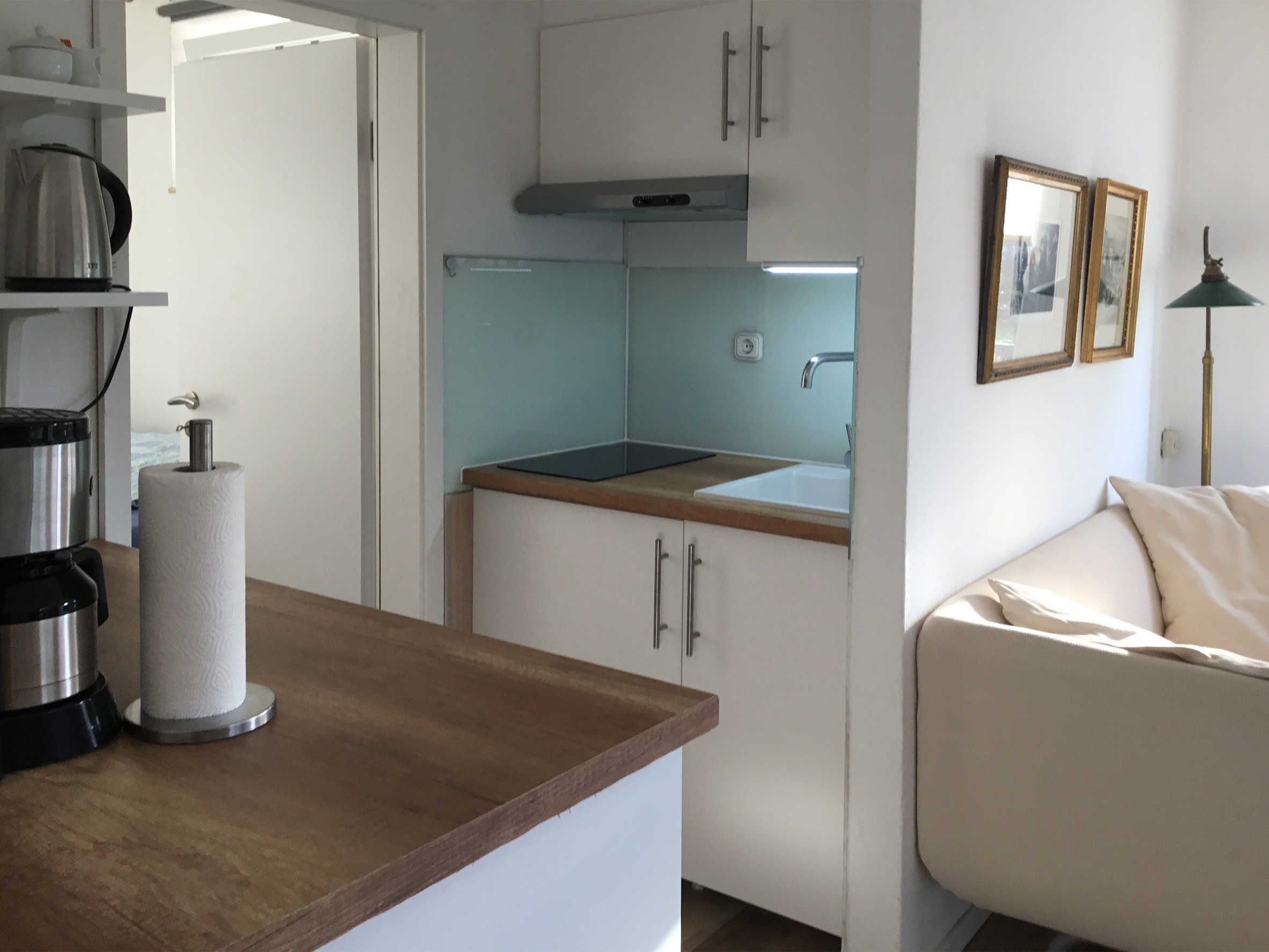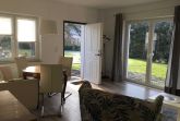 Individuell und gemütlich eingerichteter kleiner Nichraucher-Bungalow mit Terrasse und Gartenbenutzung. Hier trifft Antik auf Modern. Gemütliche Essecke mit Blick auf den kleinen Gartenteich, Fernsehbereich mit Schlafsofa und Sessel, kleine Küchenzeile mit 2-Plattenherd, Backofen, Kühlschrank, Spüle etc. An den Wohnbereich grenzt das Schlafzimmer mit französichem Bett (1,60 x 2 m).